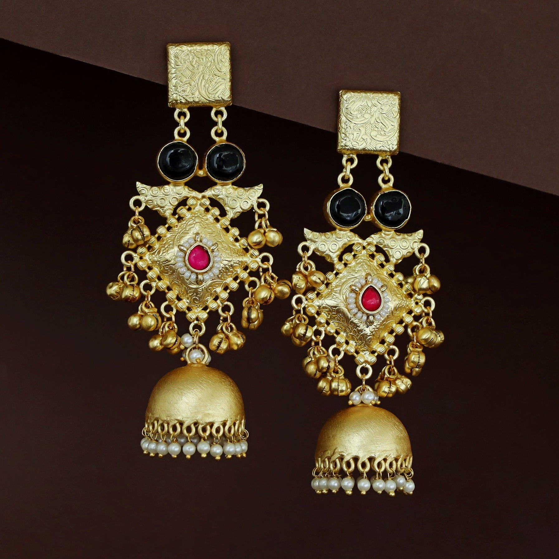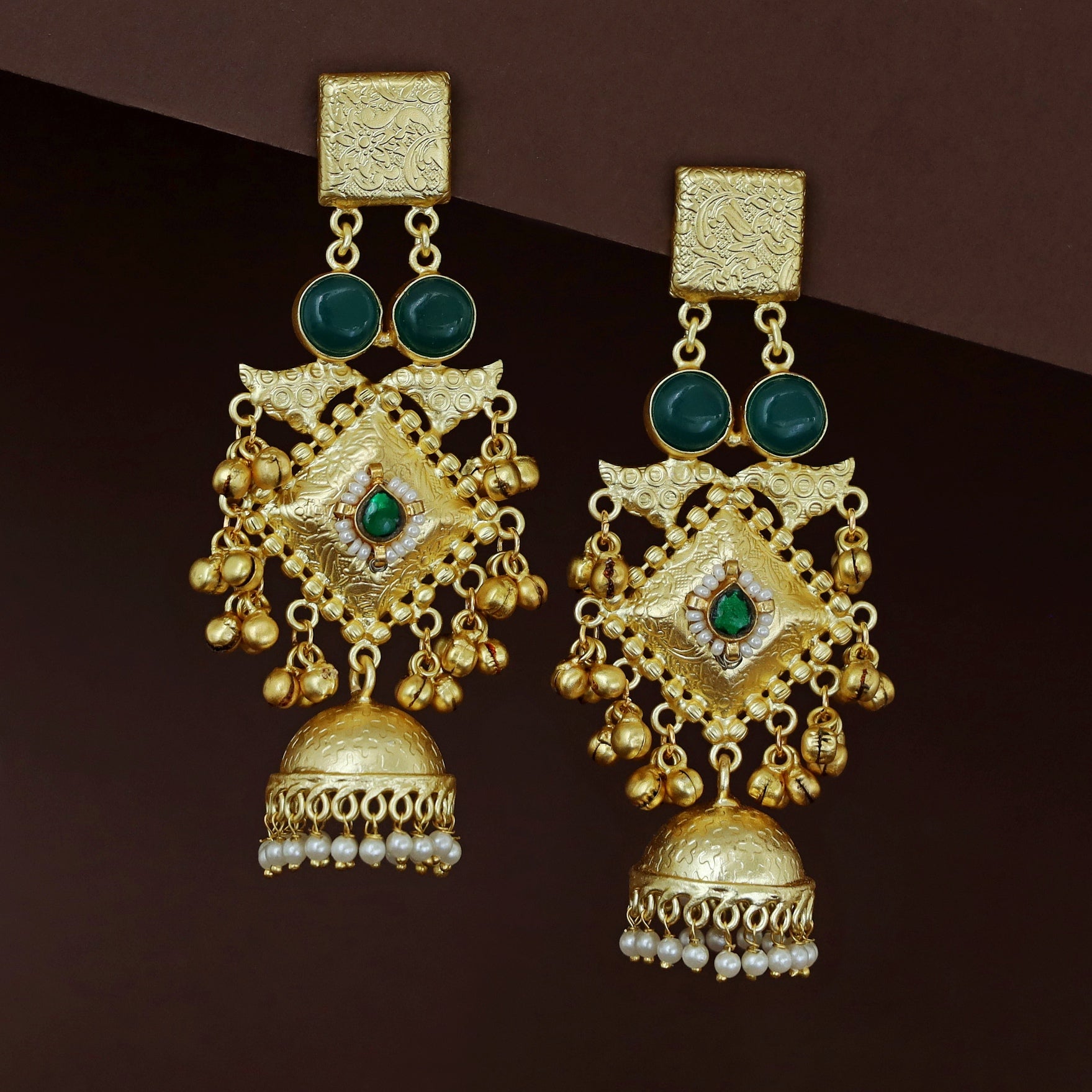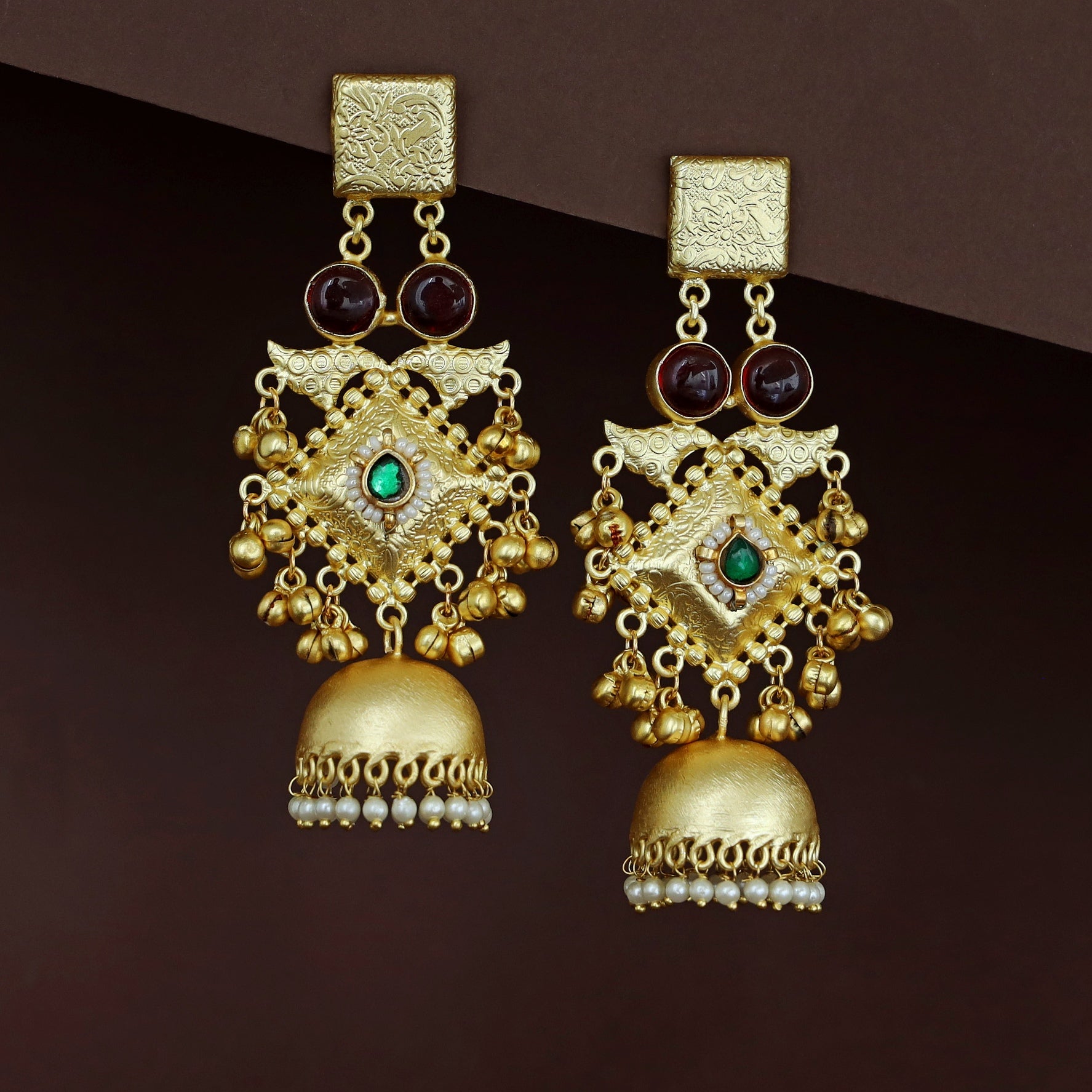 Akshara Golden Ghungroo Kashmiri Long Jhumka