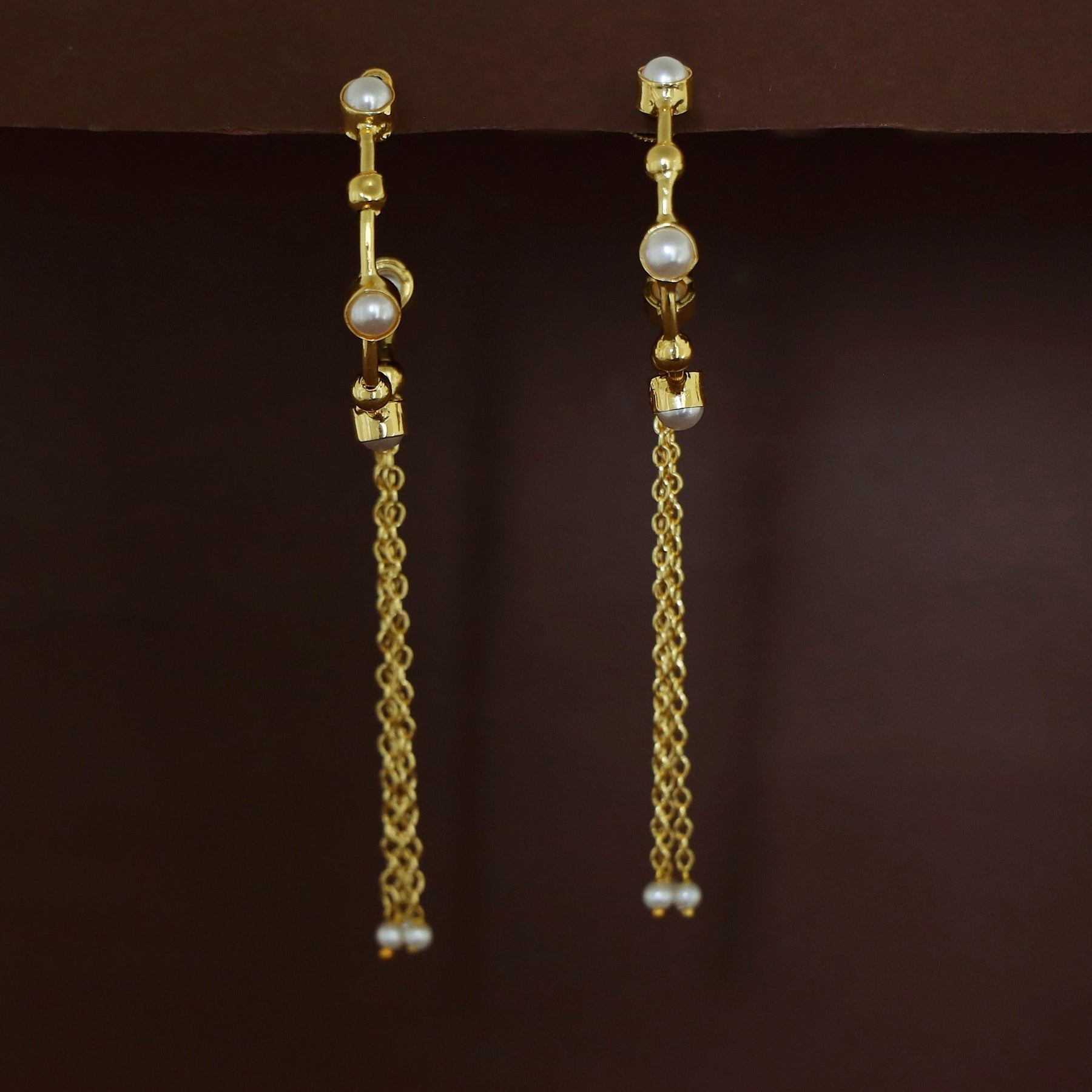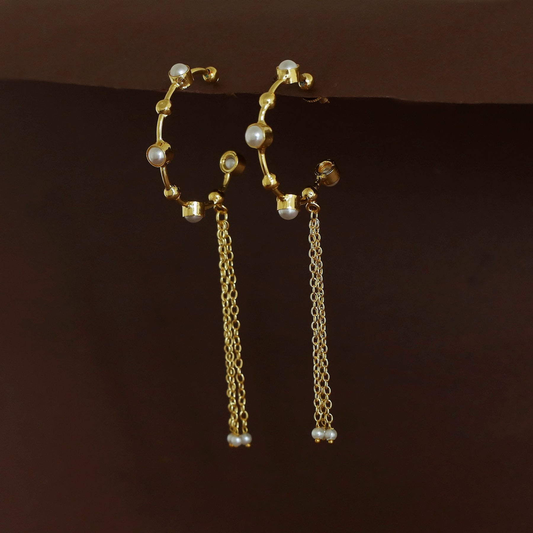 Golden Tetra Pearl Hanging Tri Chainy Hoop Earring