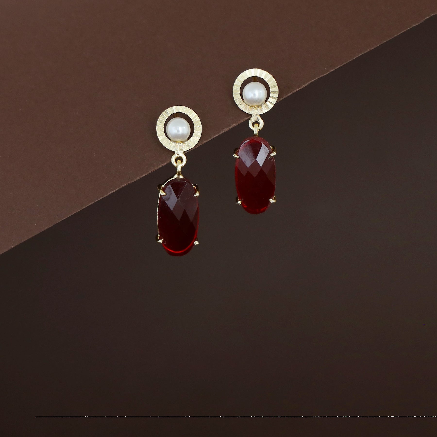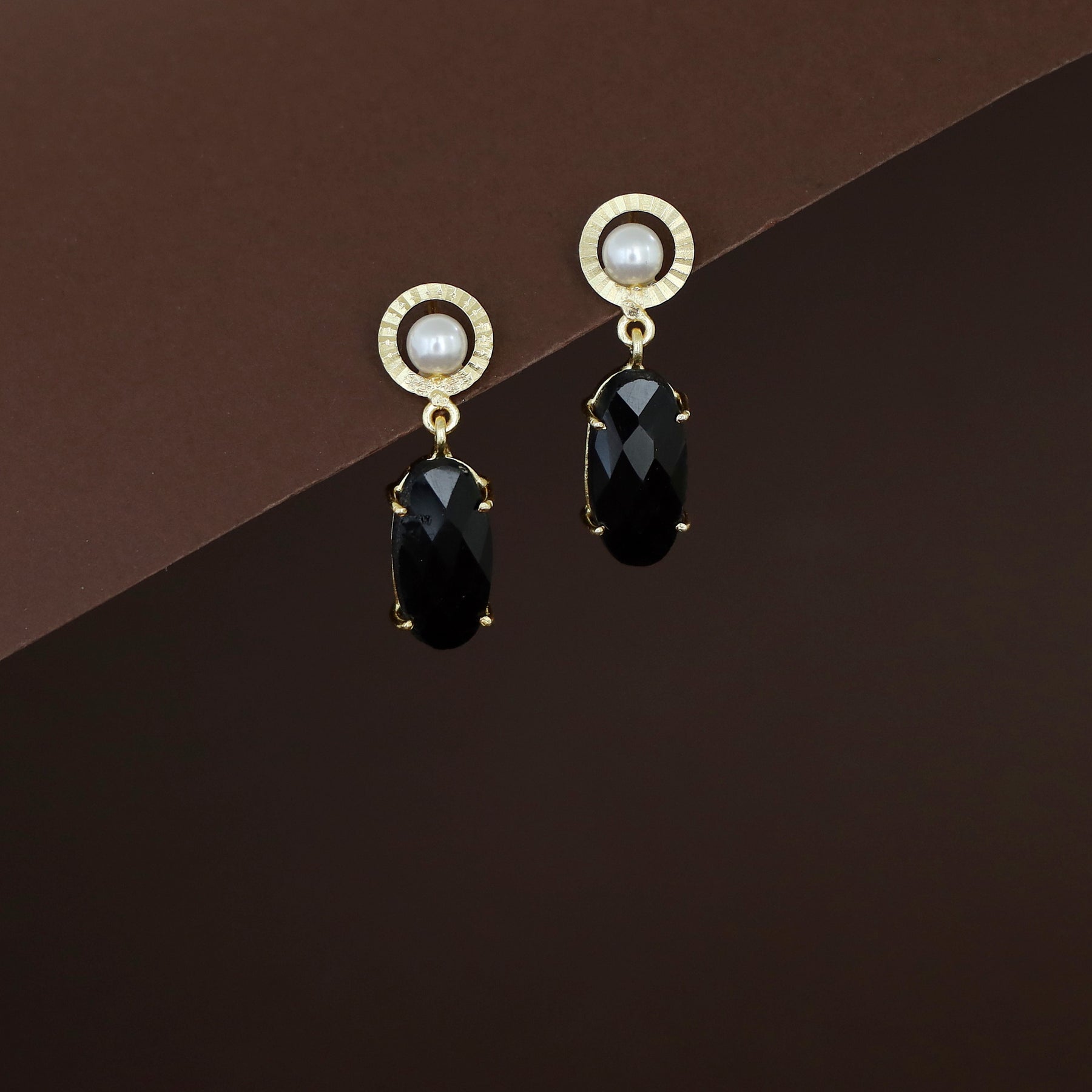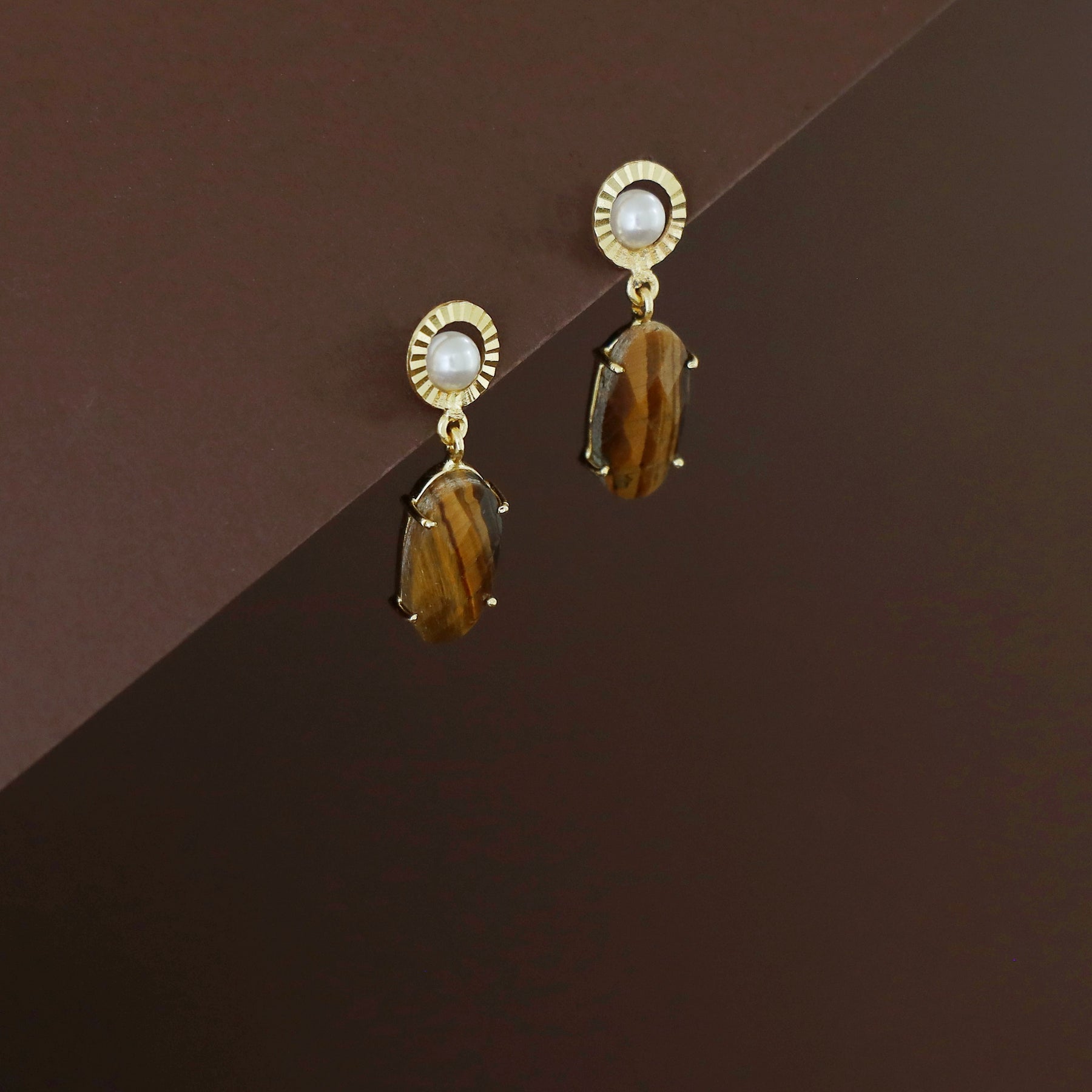 Henria Golden Circle Pearl Oval Stone Claw Earring