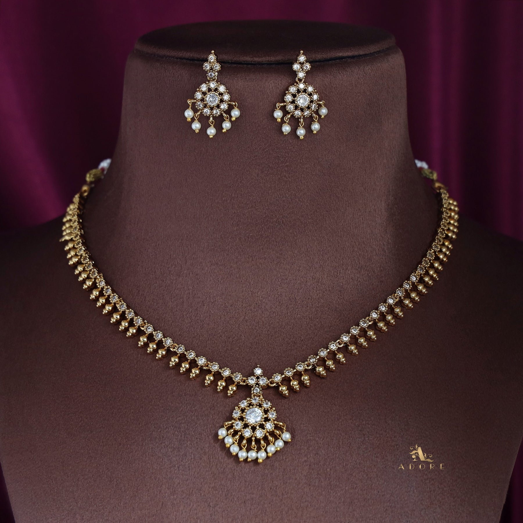 Chaitra Short Flowery Pearl Neckpice With Earring