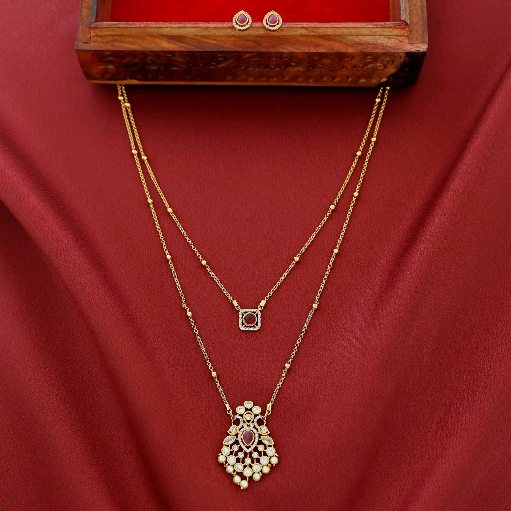 Sriddhi Two Layer Cluster Pearl Neckpiece With Earring