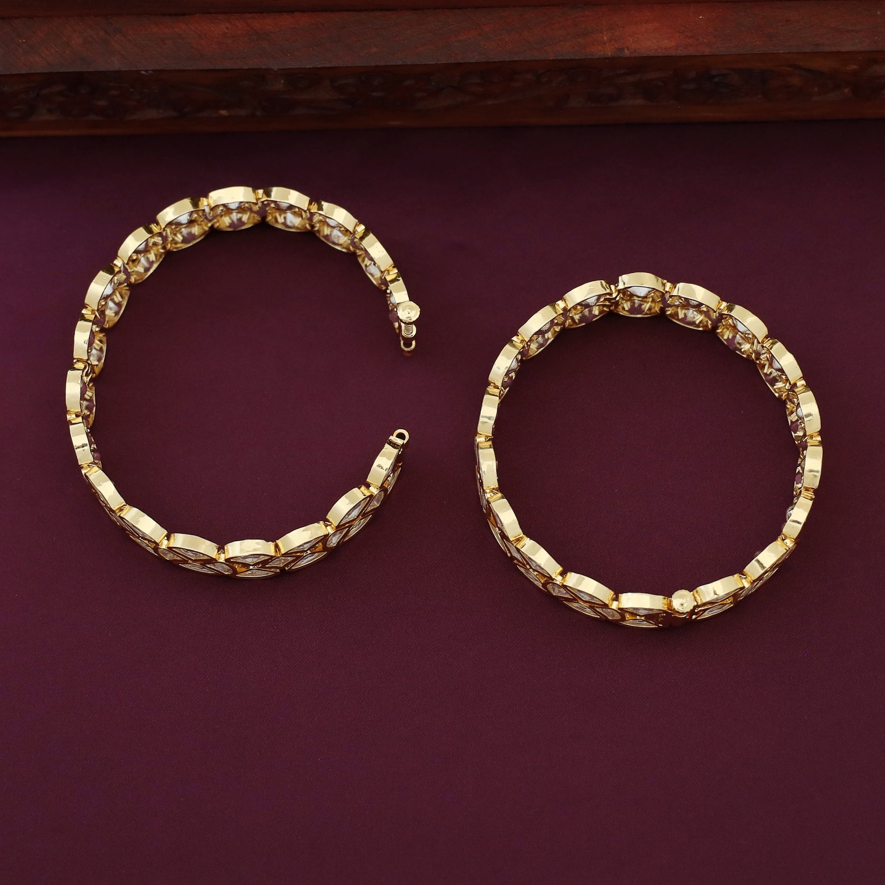 Premium Hiran Polki Kundan Flexible Bangle ( Set Of 2  )