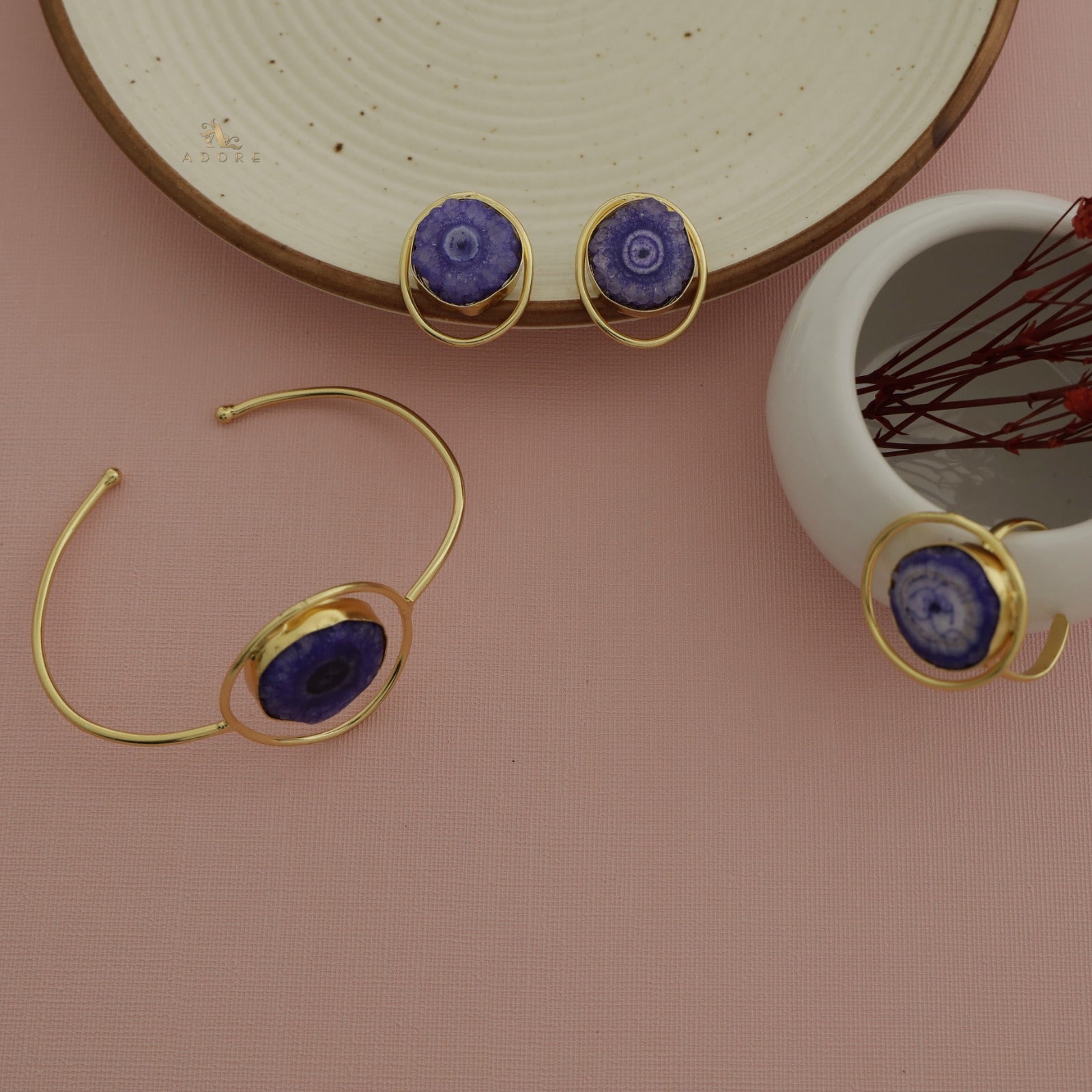 Seona Solar Agate Combo - Bracelet + Studs + Ring
