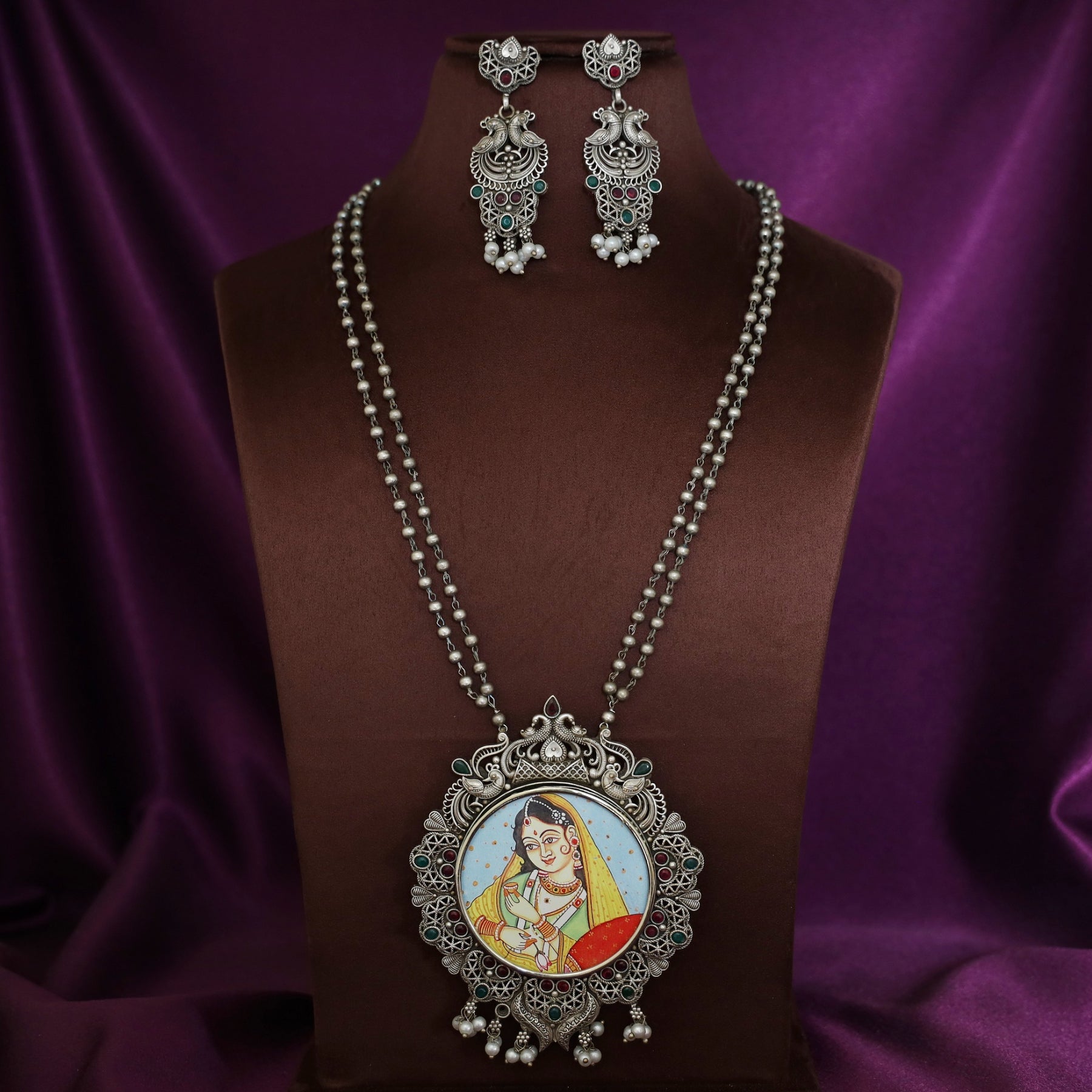 Ashly Antique Silver 2 Layer Ball Pendant Neckpiece With Earring