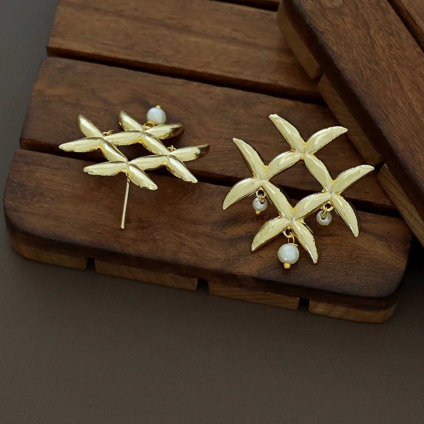 Mehal Golden Tetra Flower Pearl Earring