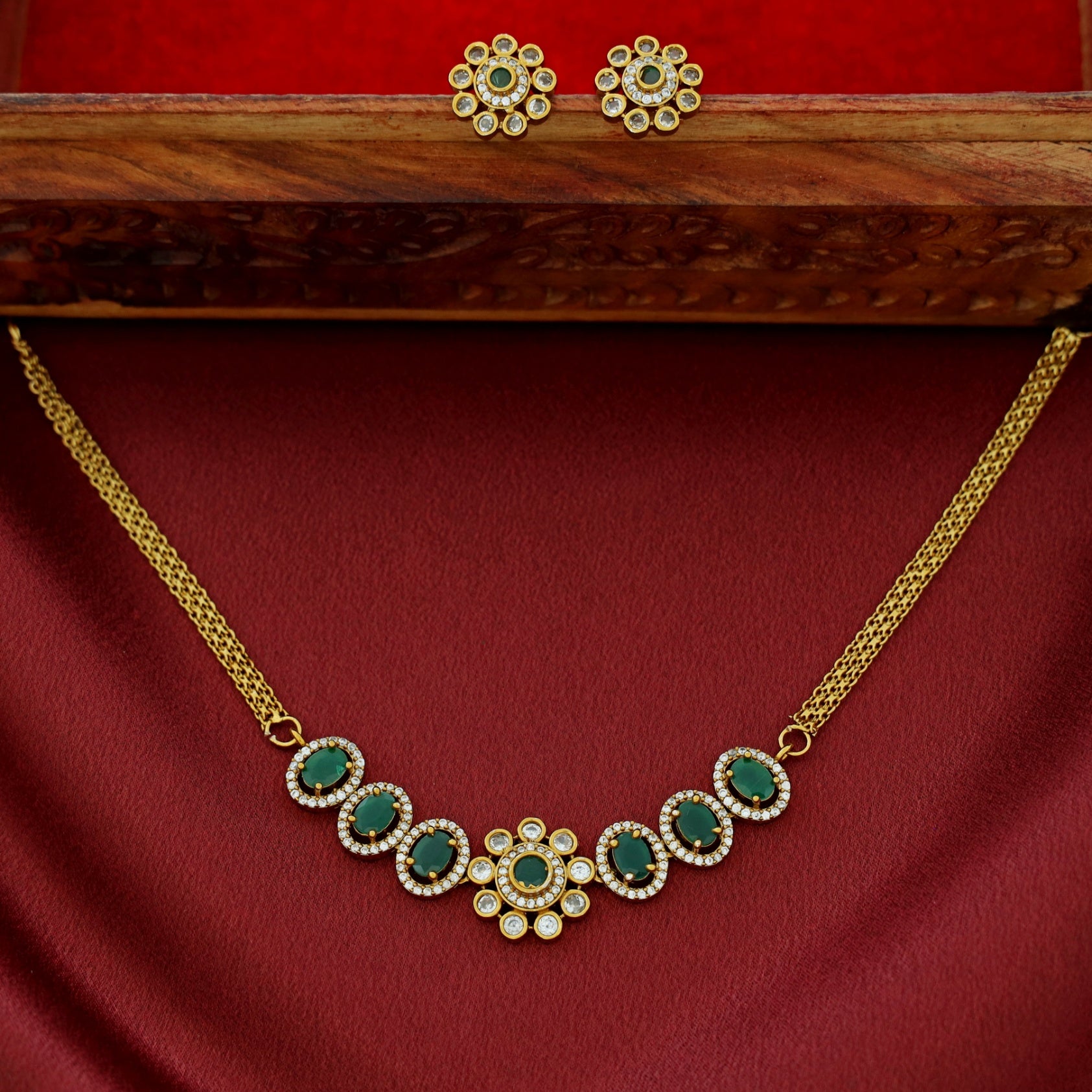 Ashisha Flower Glossy Oval AD Choker/ Short Neckpiece with Earring
