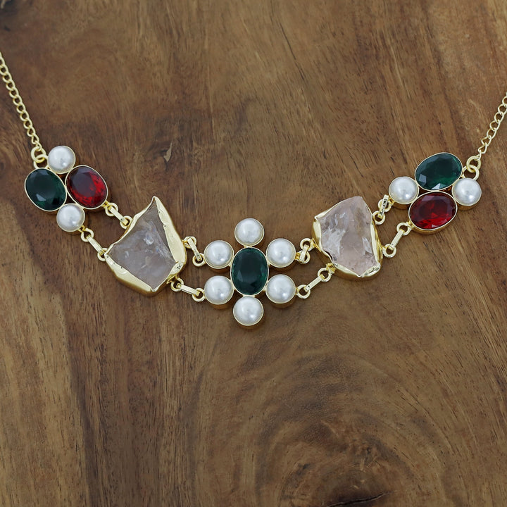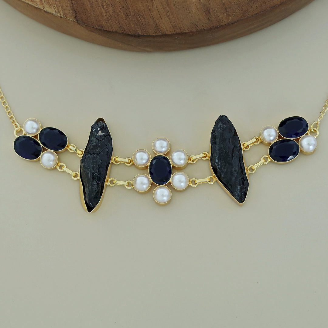 Dual Oval Glossy Pearl Raw Stone Choker