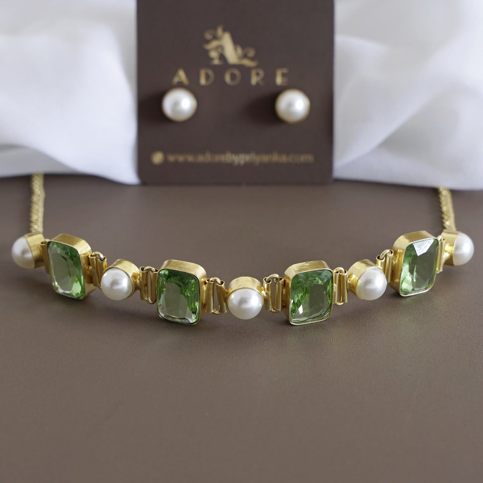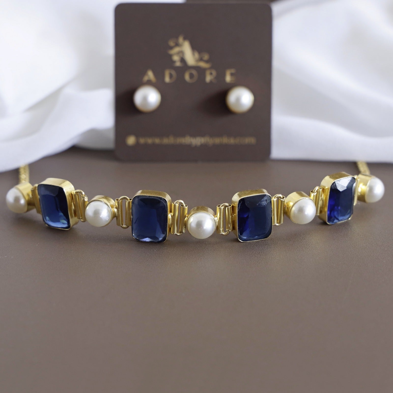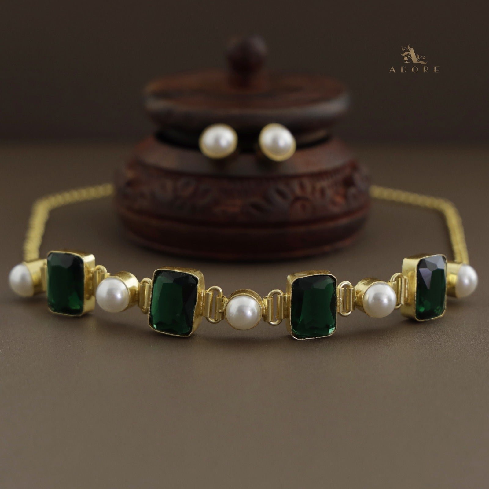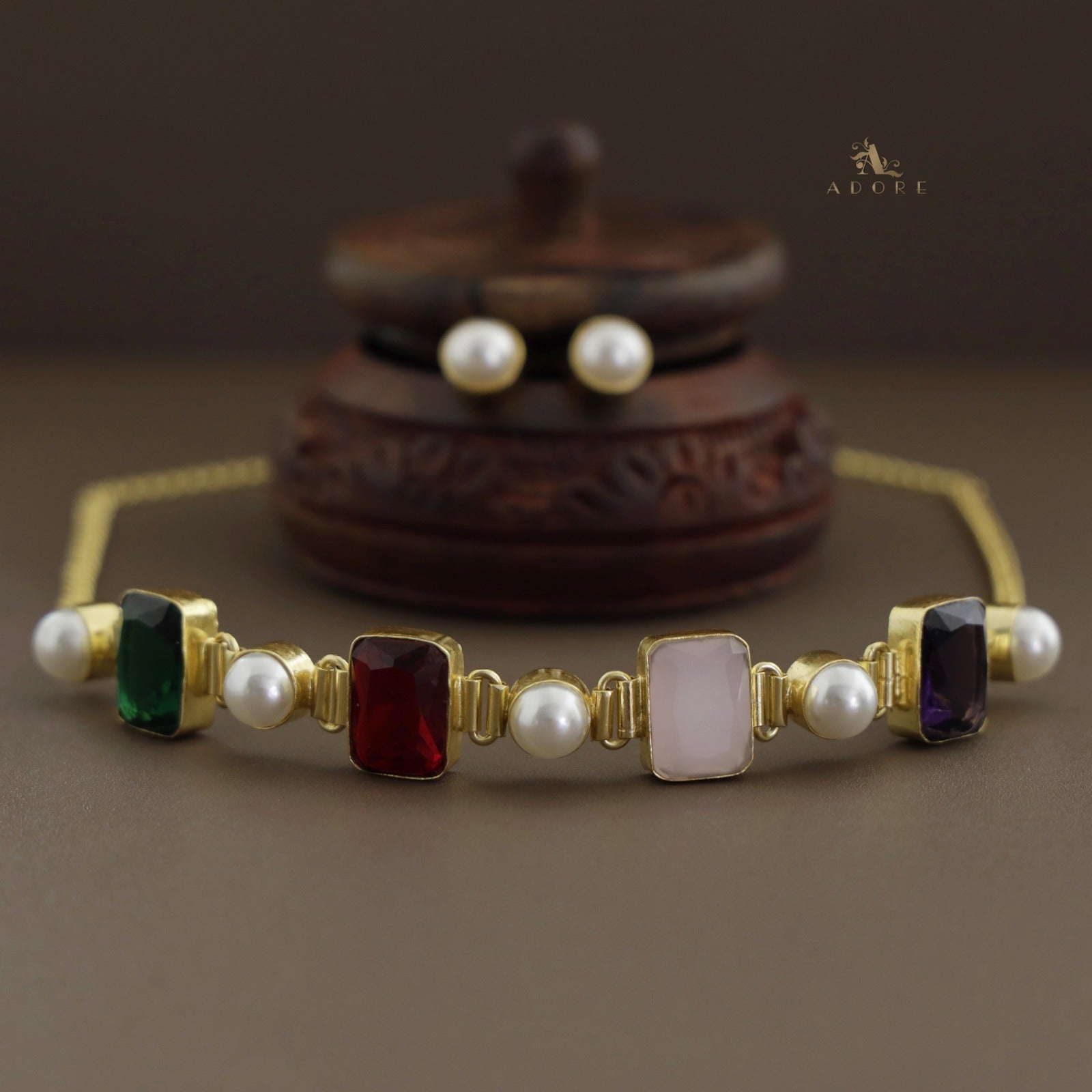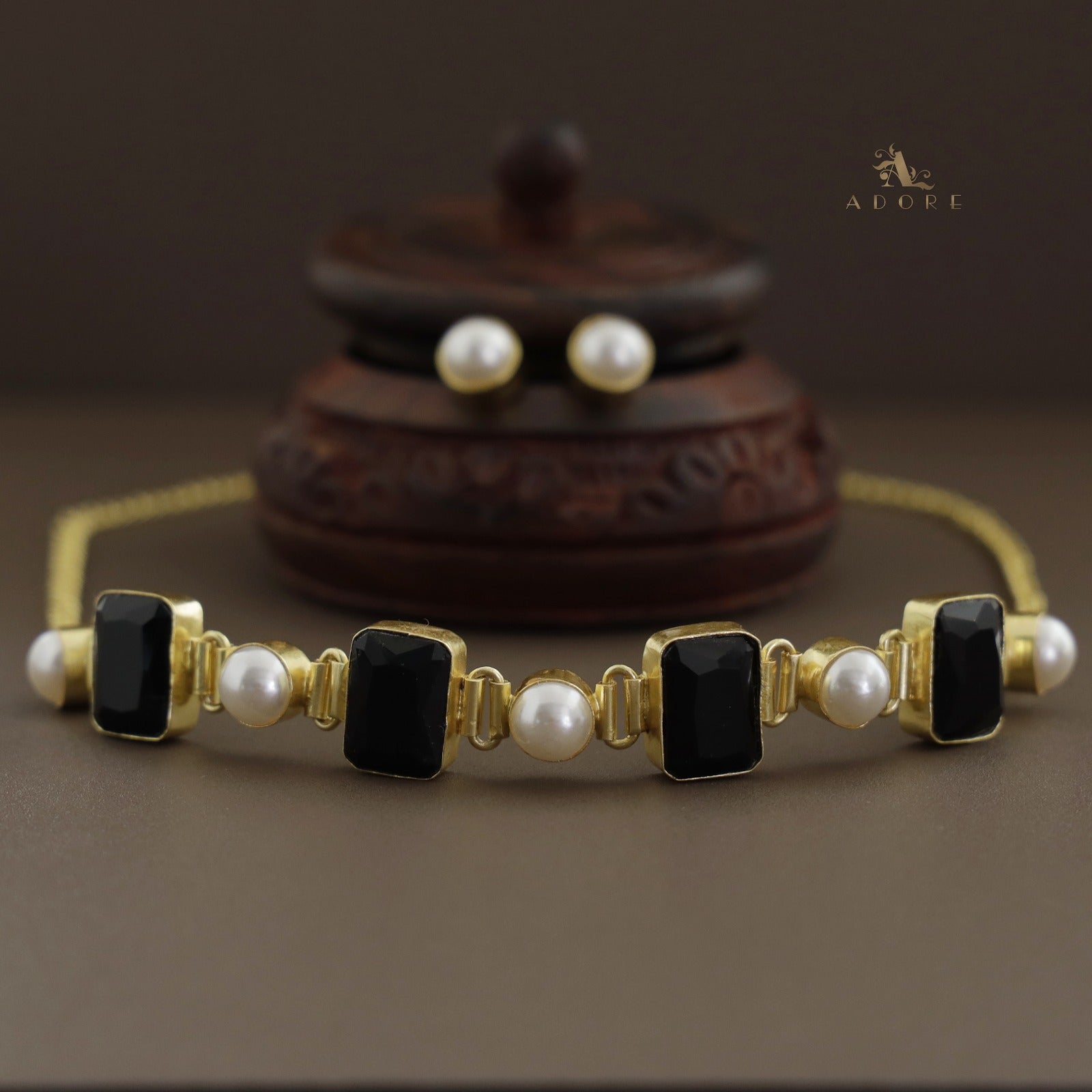 Hima Glossy Rectangle Pearl Choker With Pearl Stud