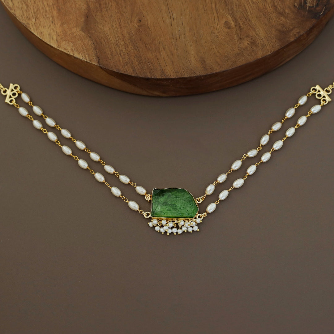 Rohi 2 Layer Cluster Pearl Dyed Stone Choker
