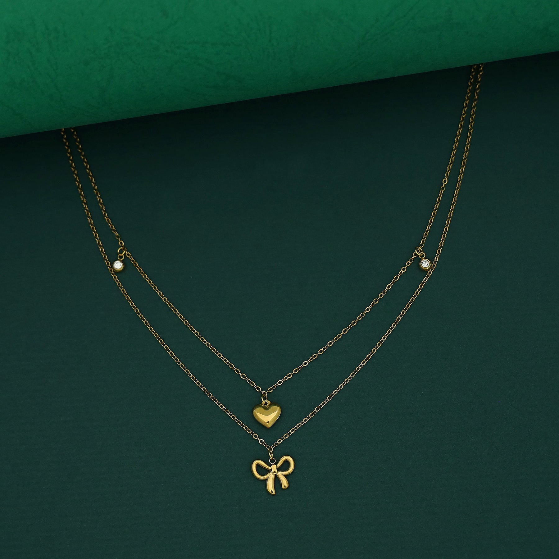 Amaya 2 Layer Heart & Bow Neckpiece