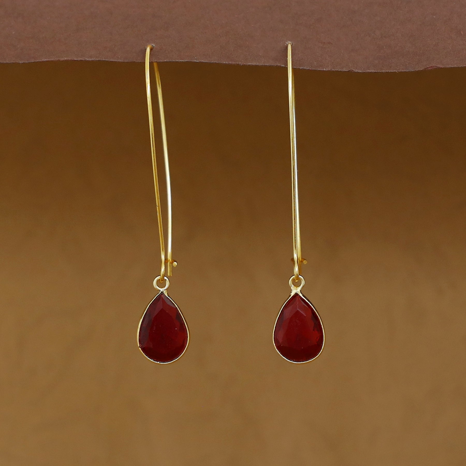 Charmi Drop Glossy Stone Lock Hoop Earring