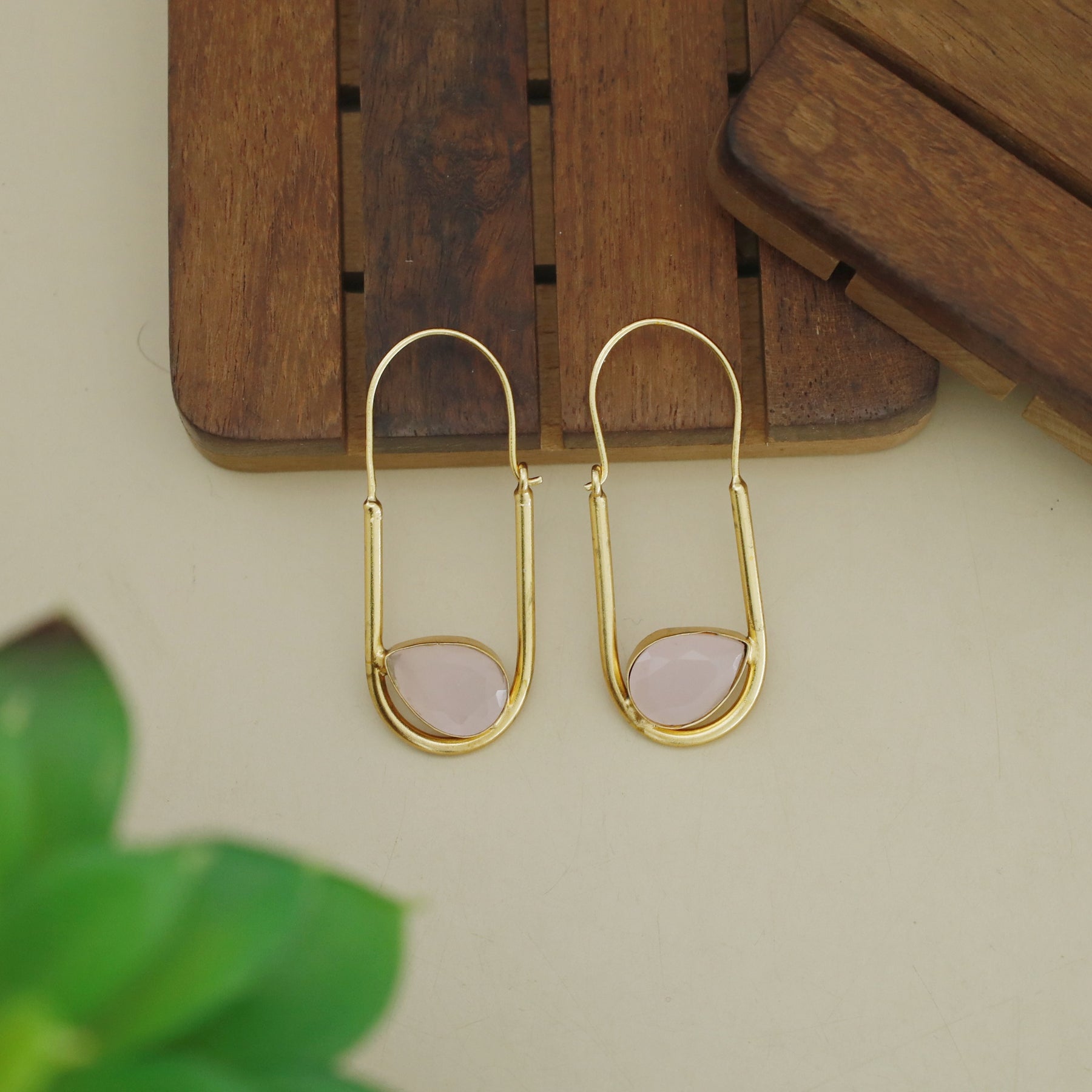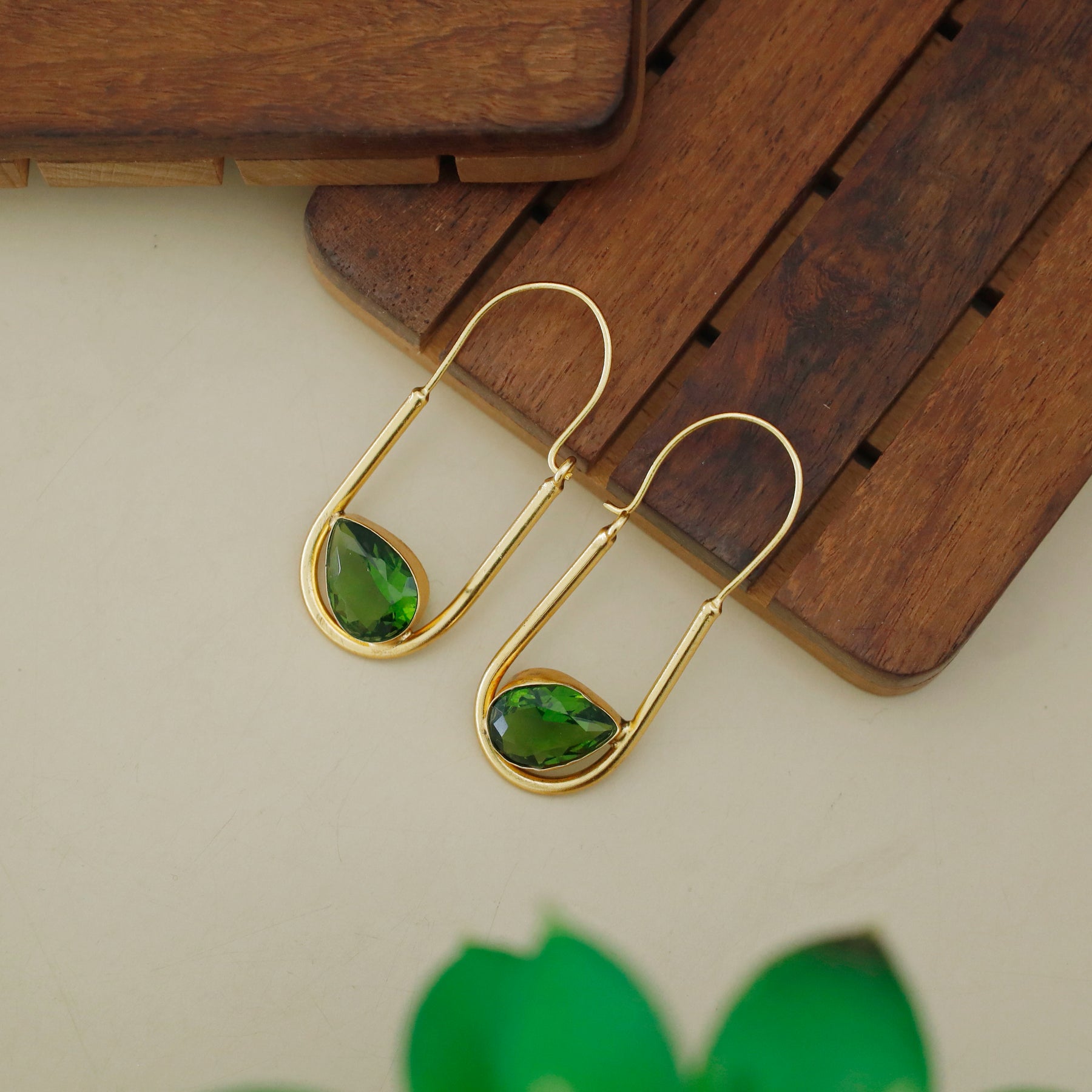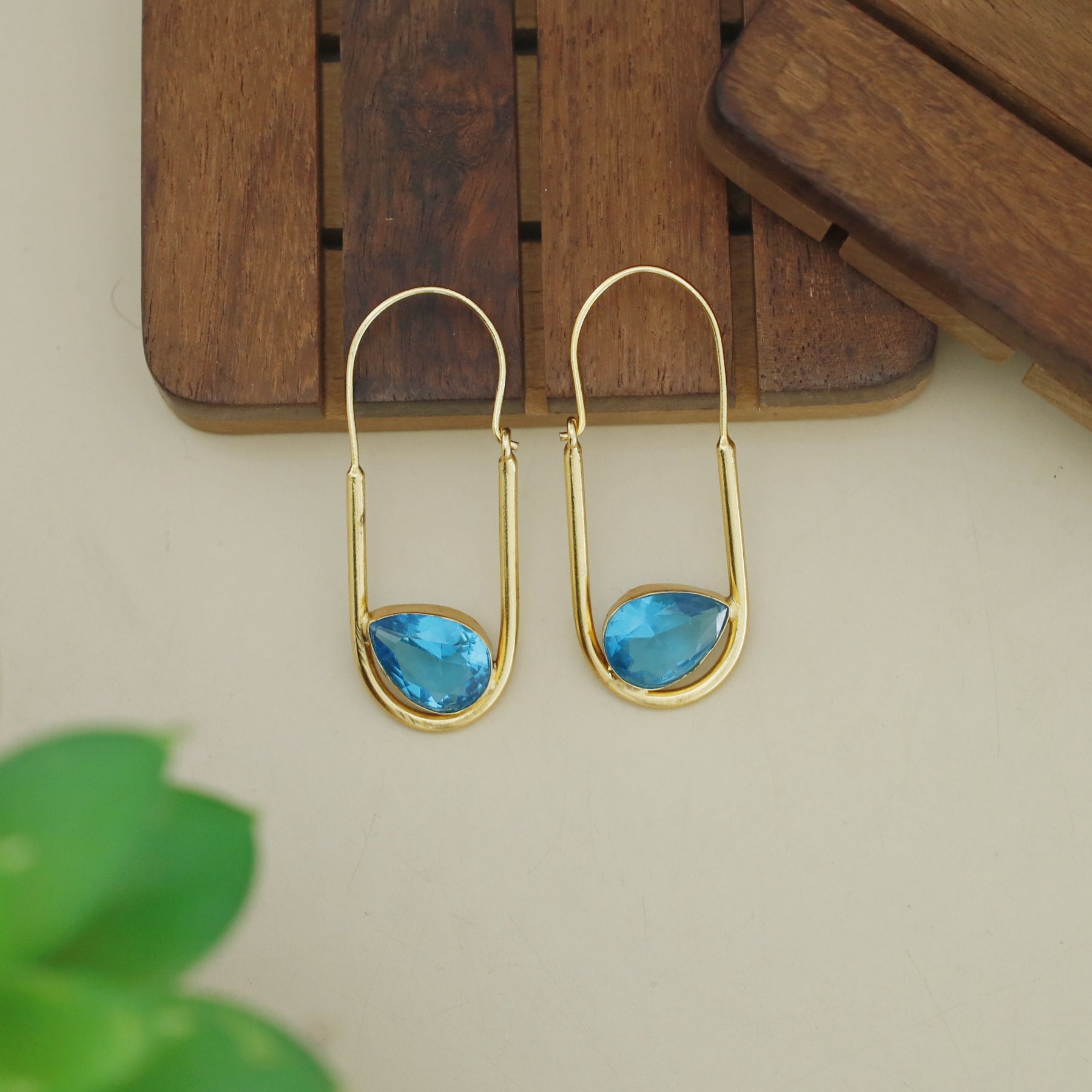 Lucille Golden Oval Drop Glossy Stone Hoop