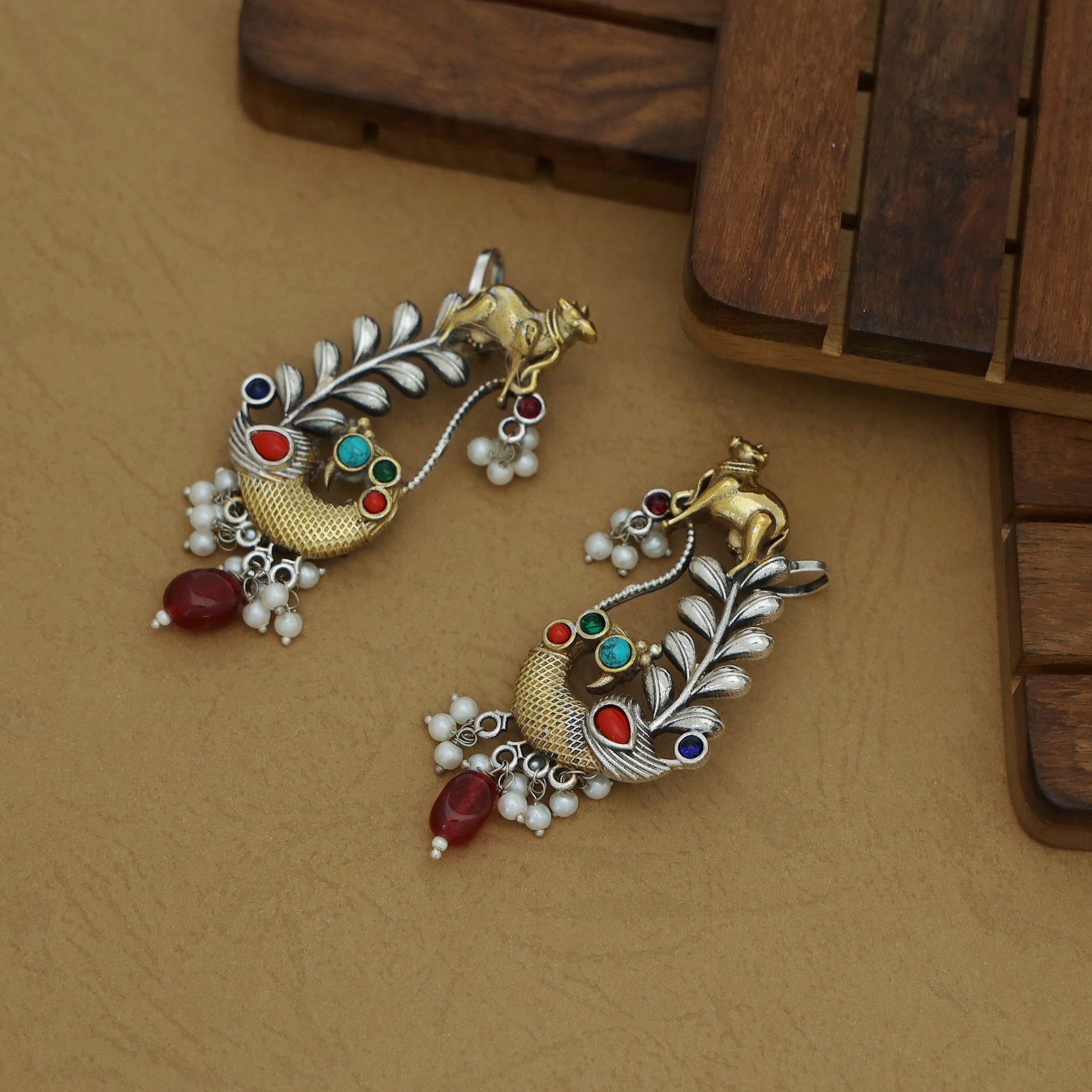 Iksha Mayura & Cow Beaded Pearl Earring / Ear-Cuff (Set Of 2)