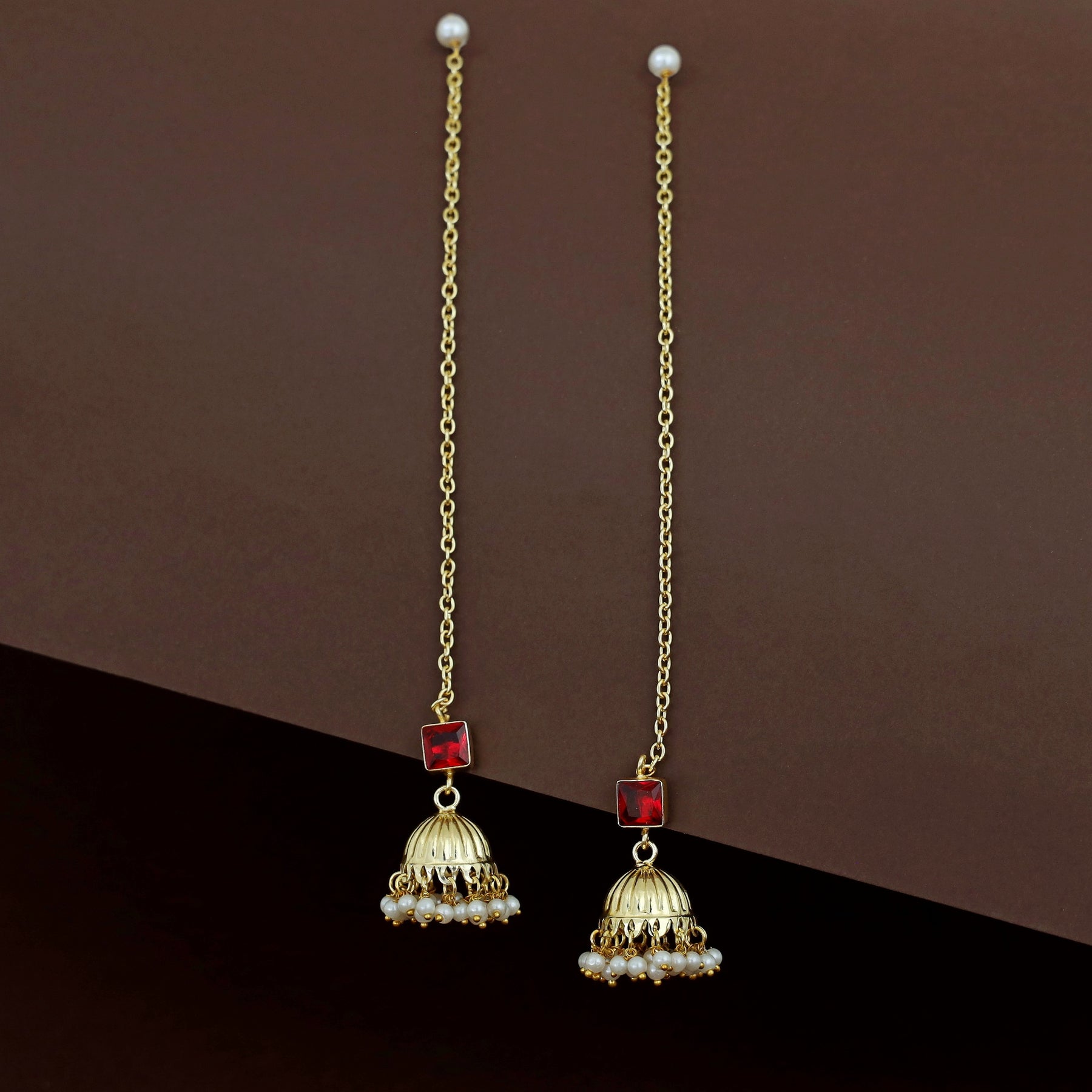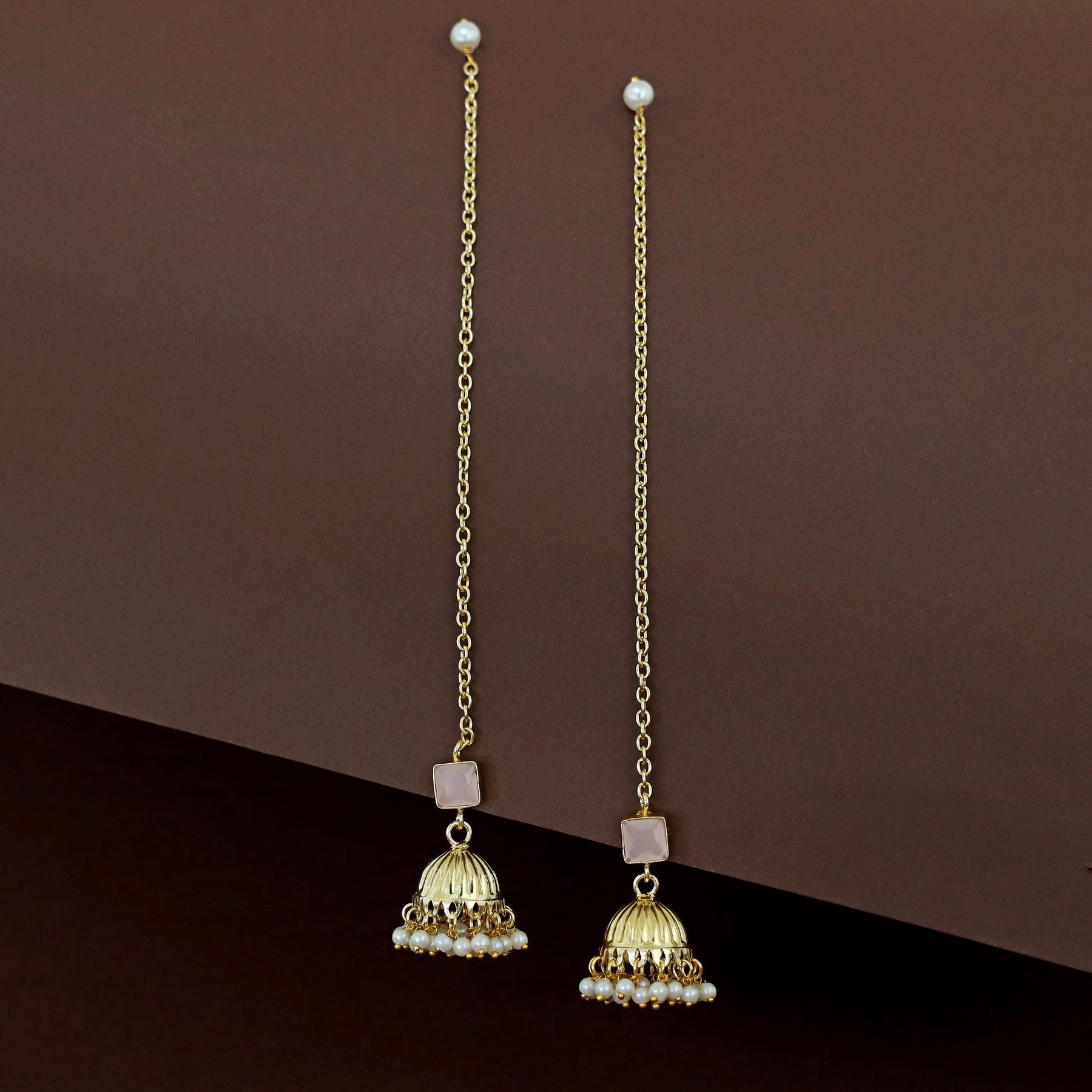 Aadhavi Glossy Pearl Jhumka With Ear Chain