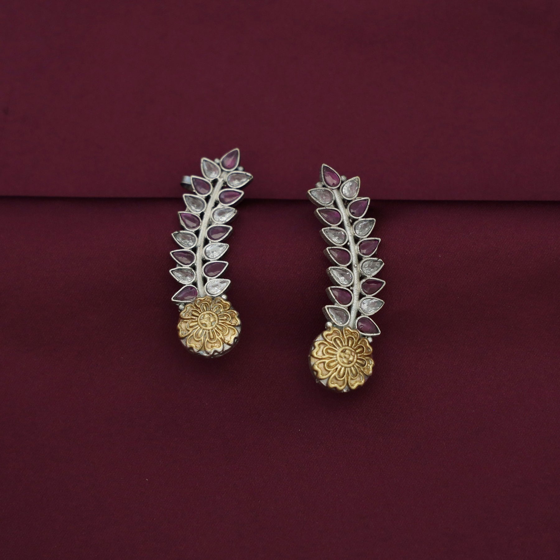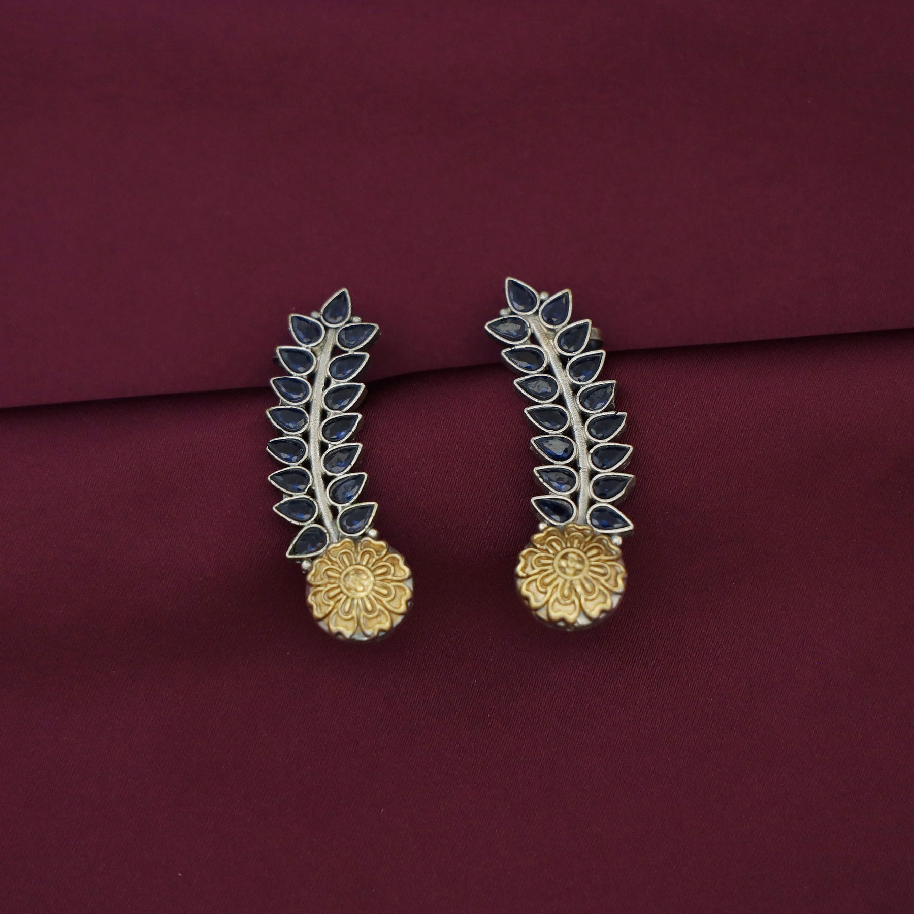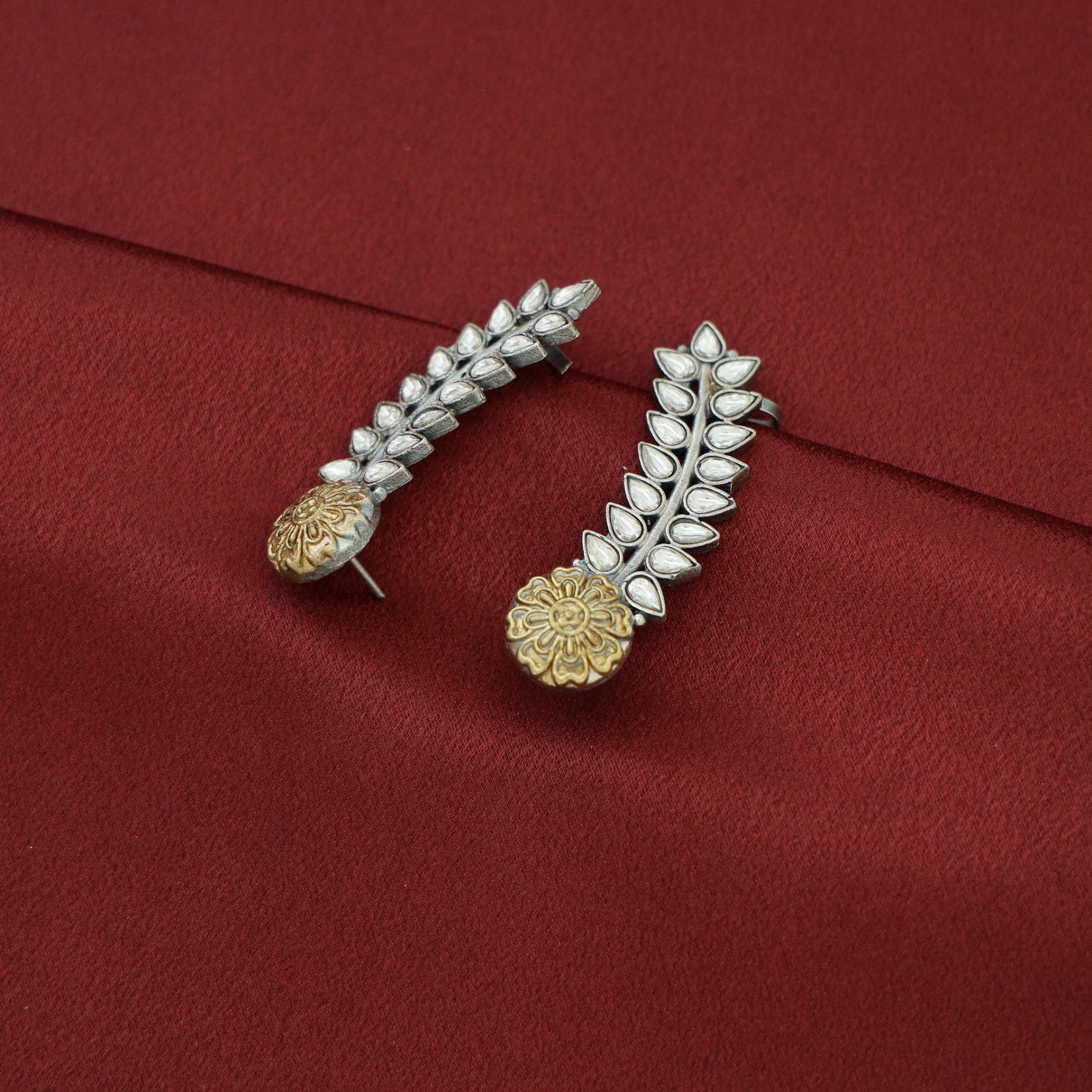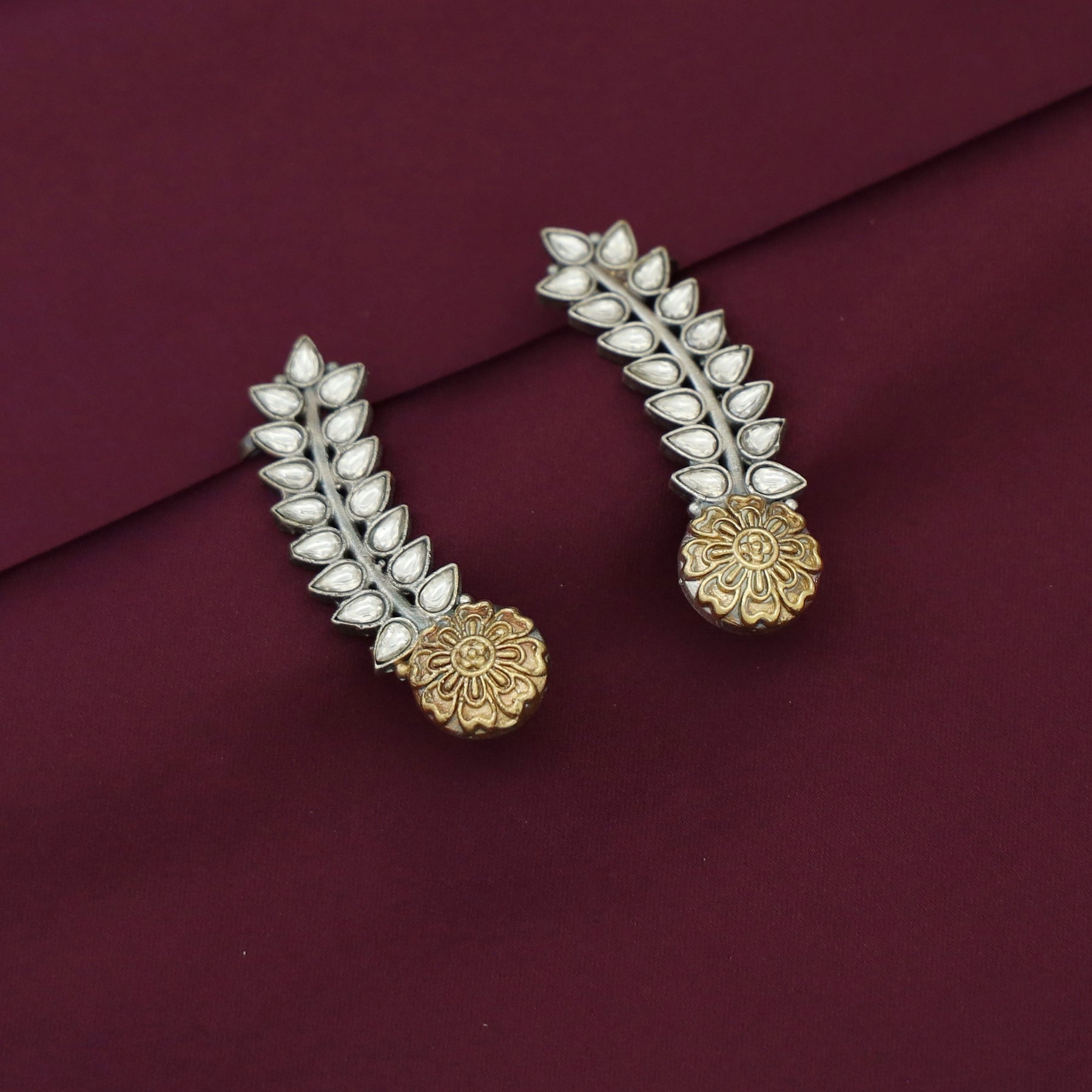 Hailey Leafy Flower Dual Tone Ear - Cuff (Set Of 2)
