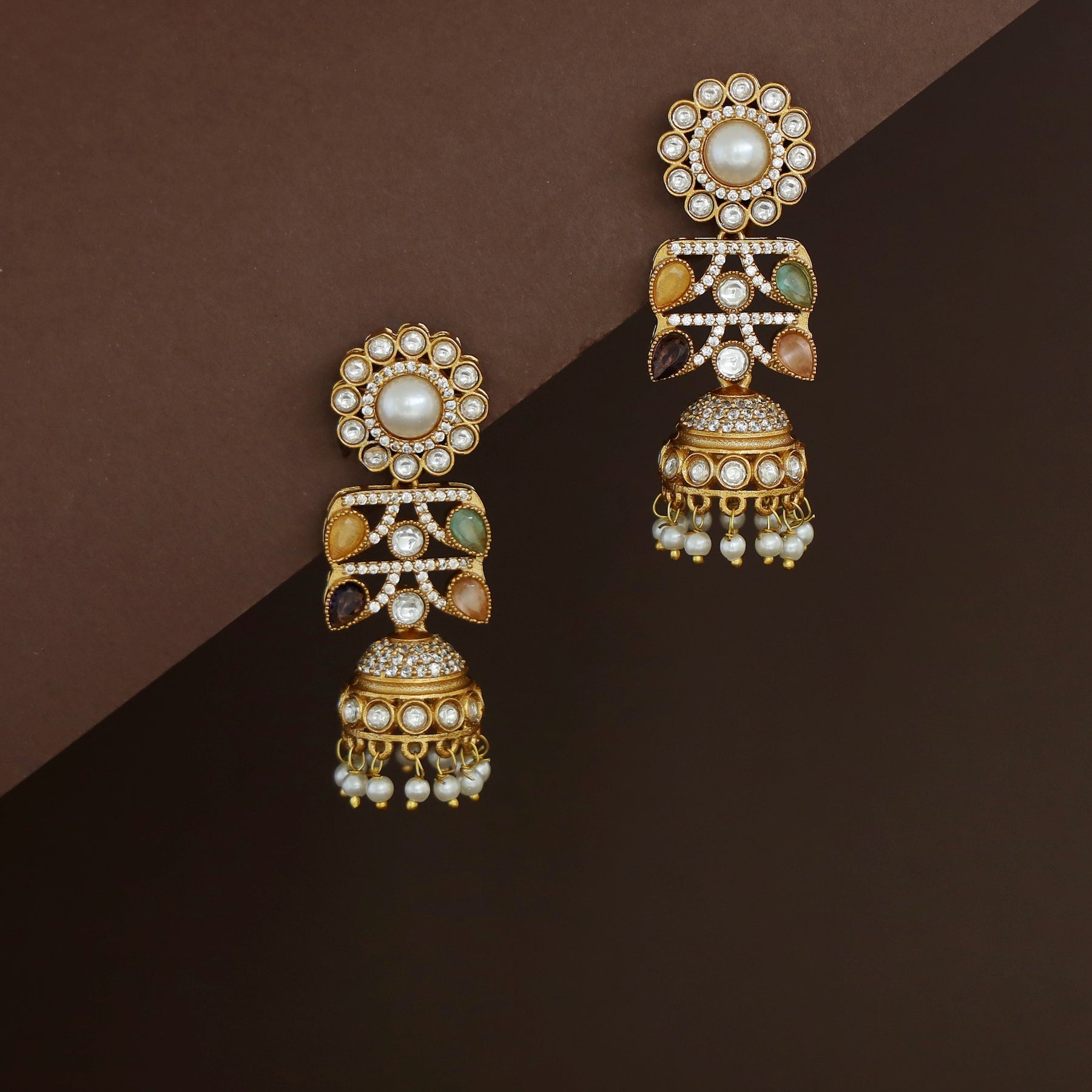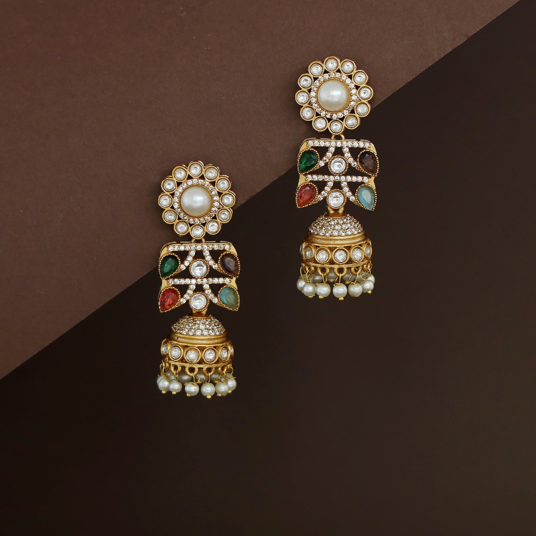 Rakhi Floral Pearl Kundan Jhumka