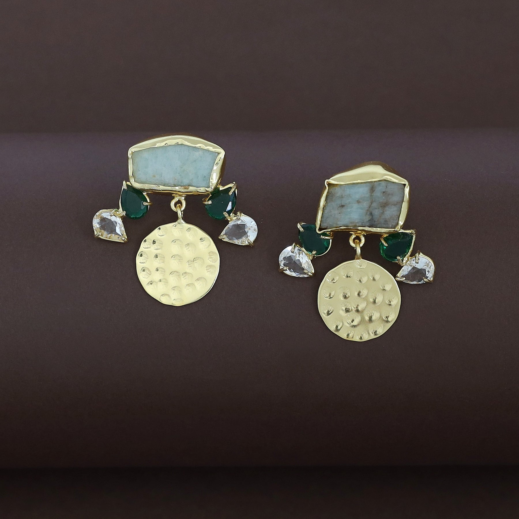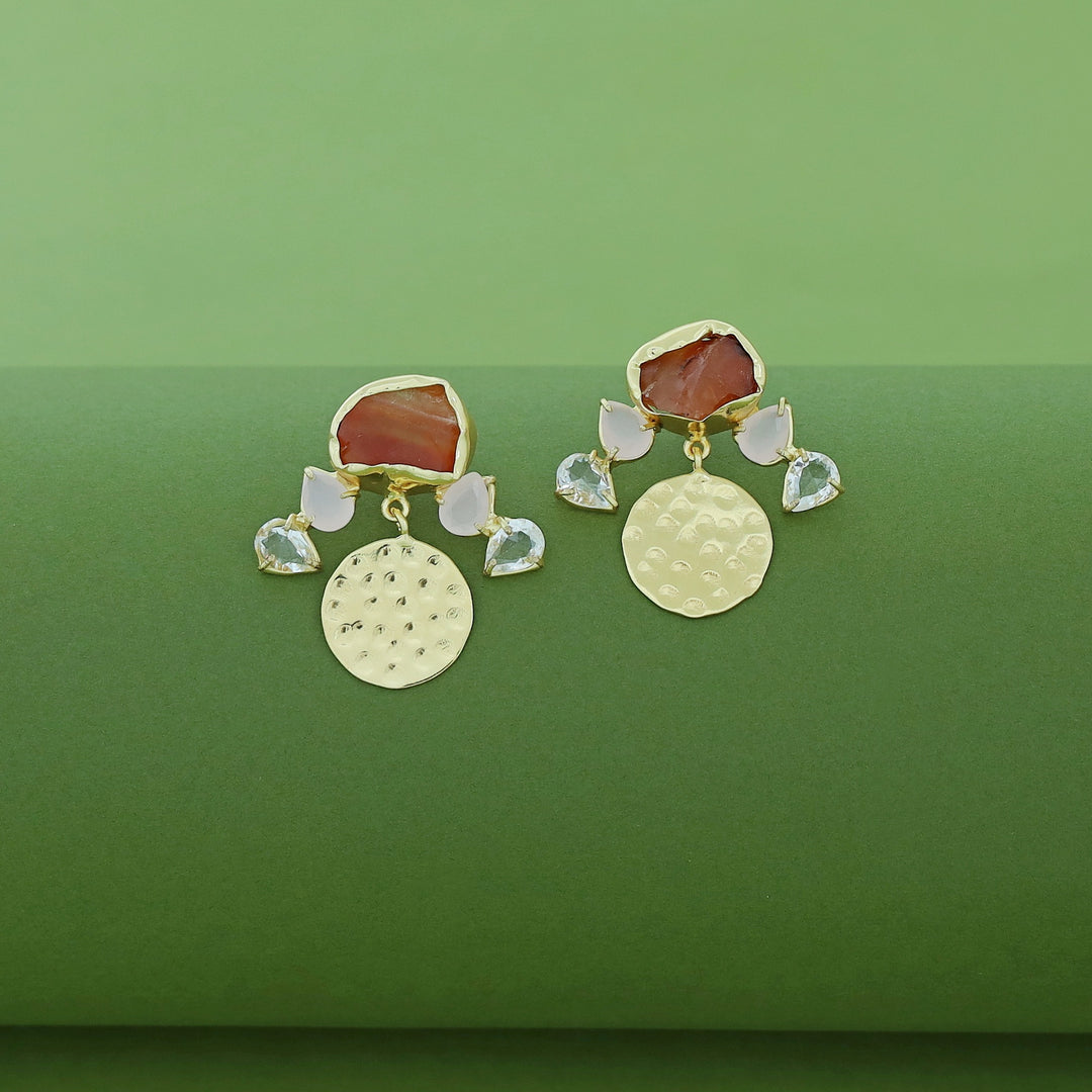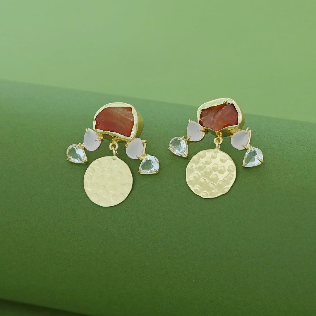 Aalis Raw Stone + Glossy Golden Textured Earring