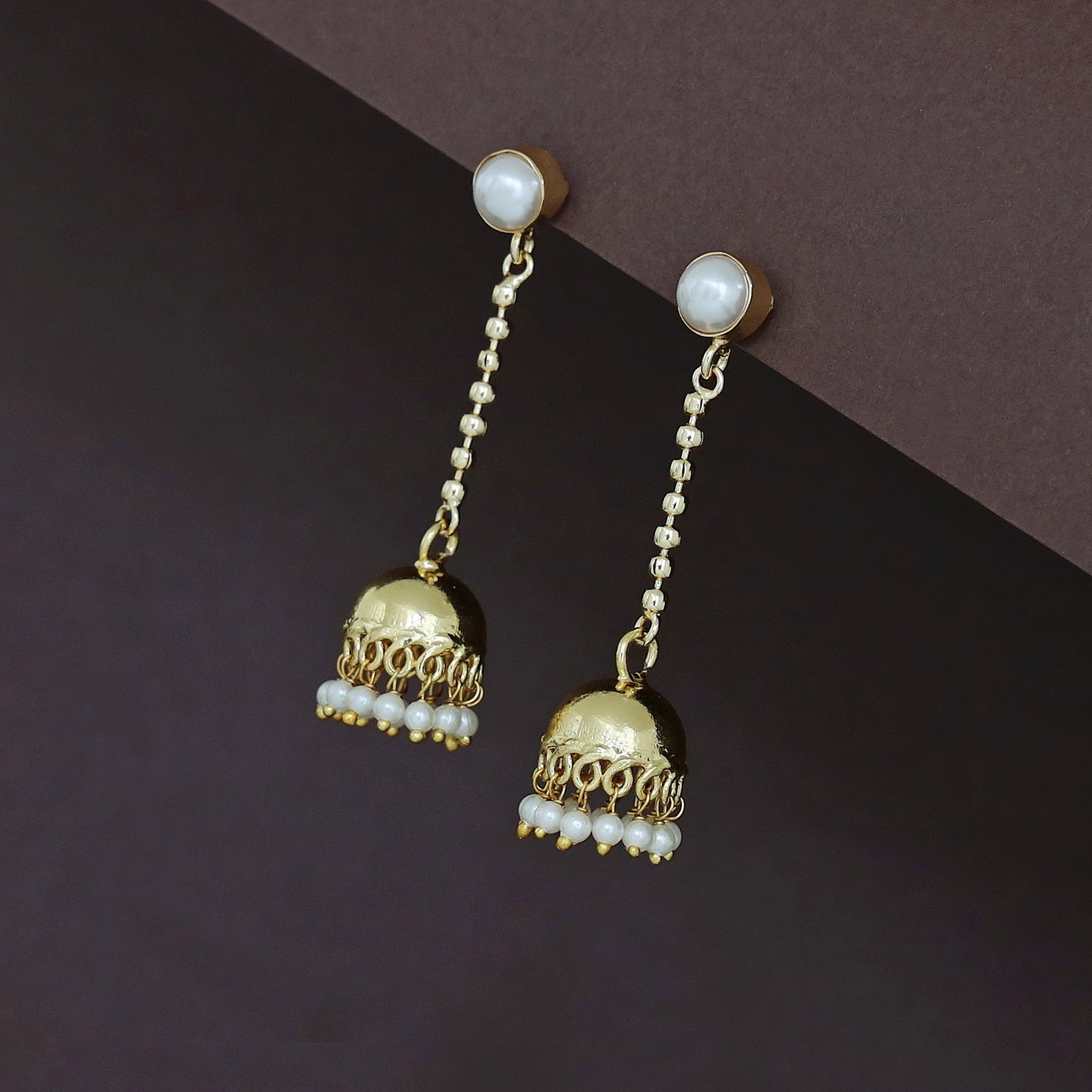 Advika Hanging Golden Ball Pearl Jhumka
