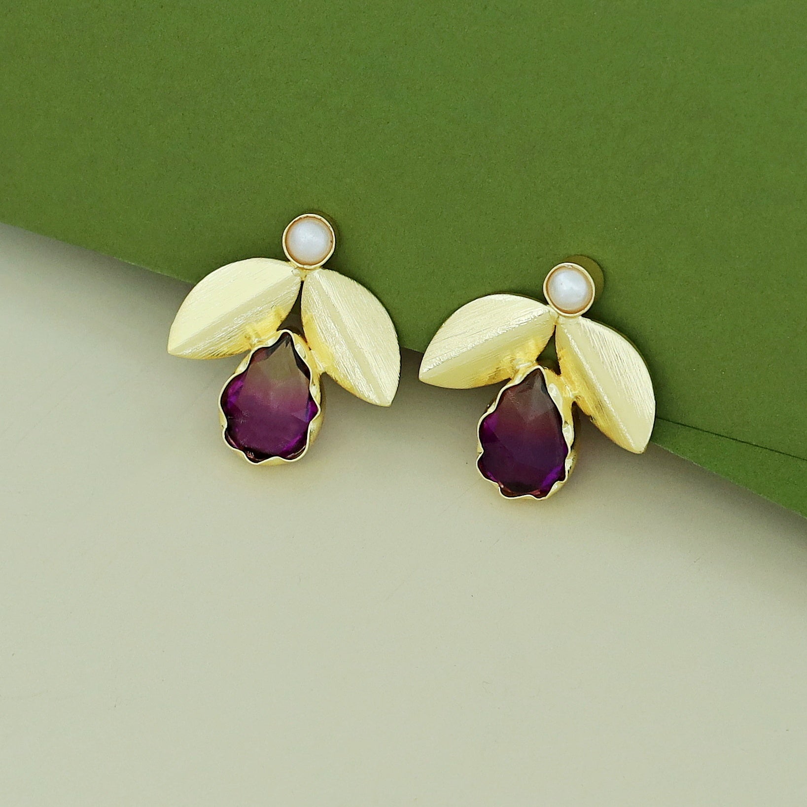 Ajala 2 Fold Leaf Glossy With Pearl Earring