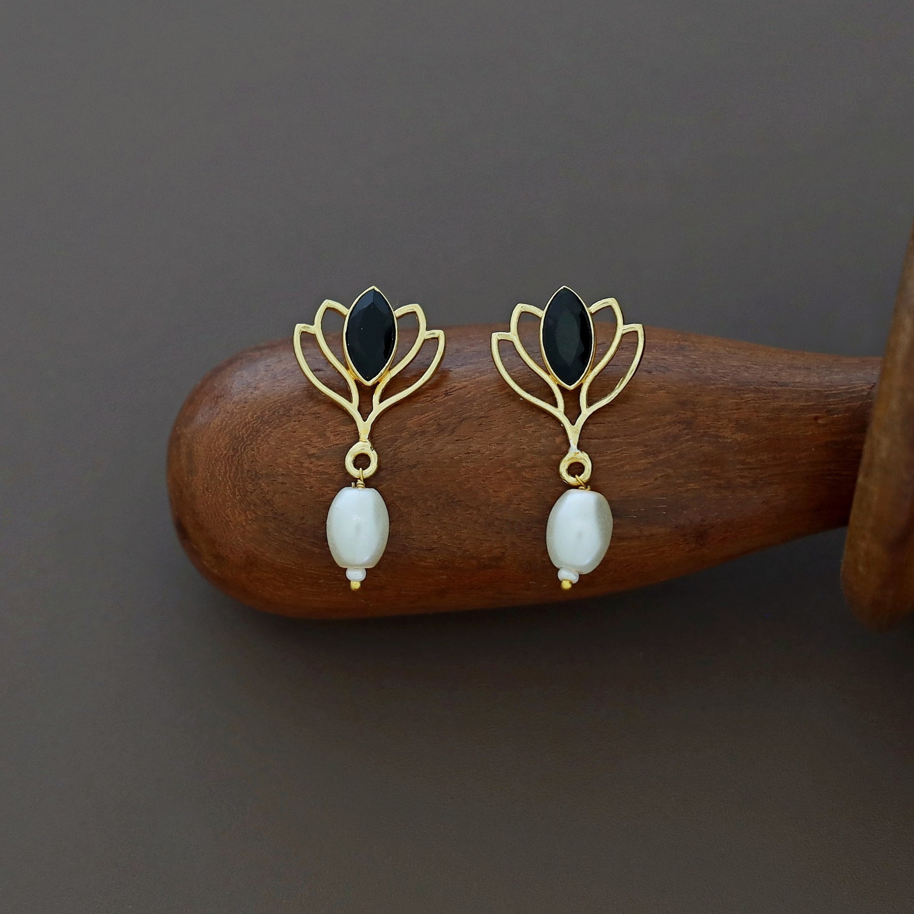 Golden Lotus Glossy + Raw Stone Pearl Earring