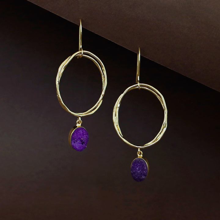 Golden Dual Oval Druzy Stone Drop