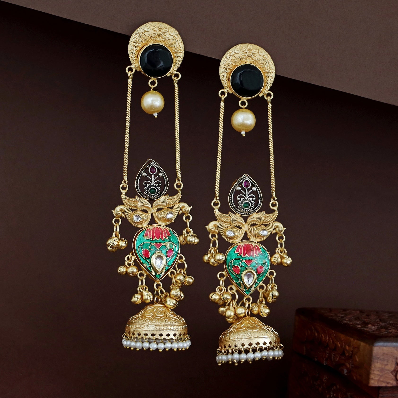Babina Golden Hanging Ghungroo Kashmiri Jhumka