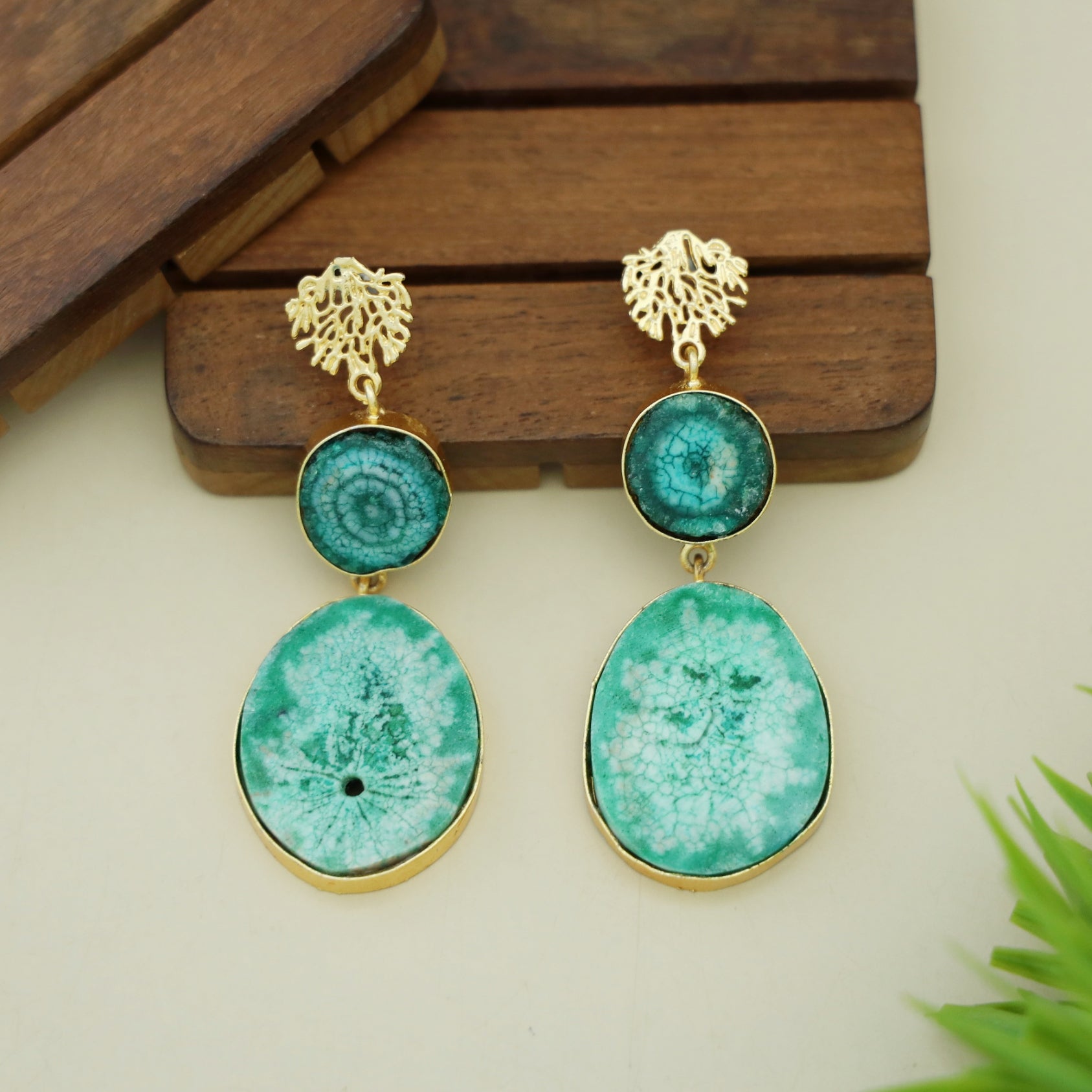 Golden Rootsa Solar Agate Earring