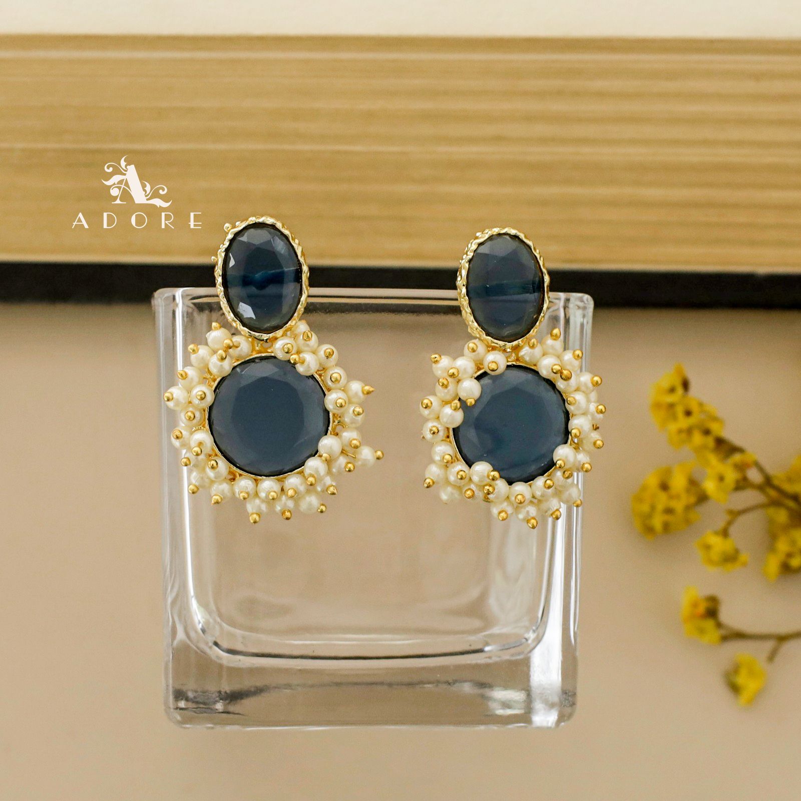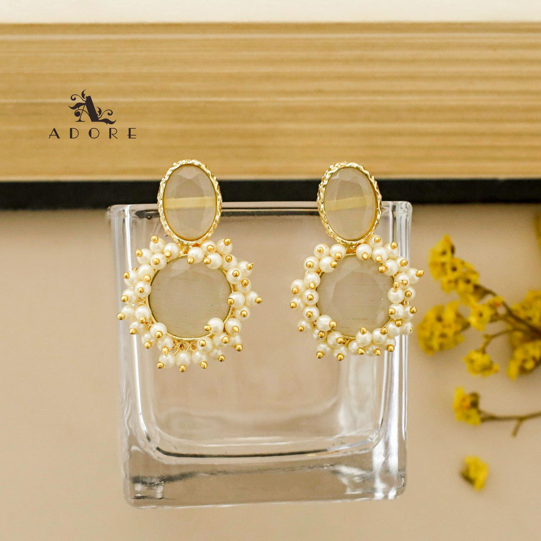 Oval & Round Glossy Cluster Pearl Earring