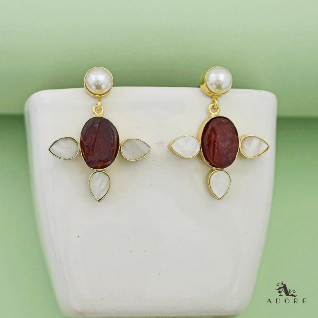 Pearly Oval Stone Tri Petal Earring  ( Dyed Stone )