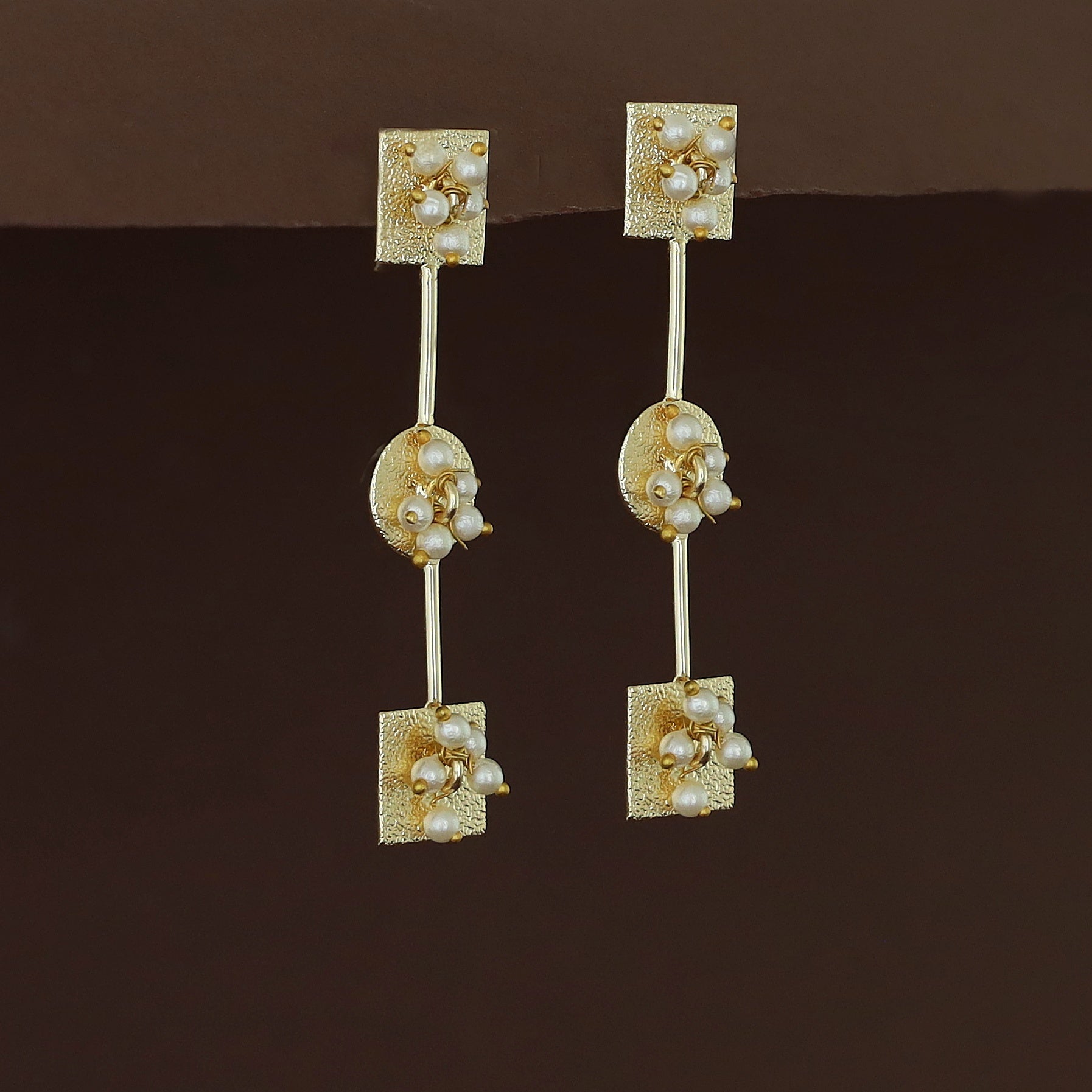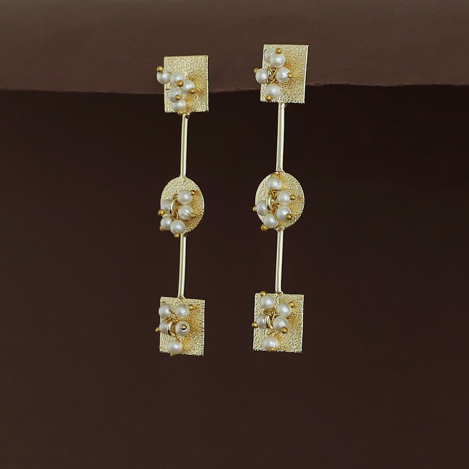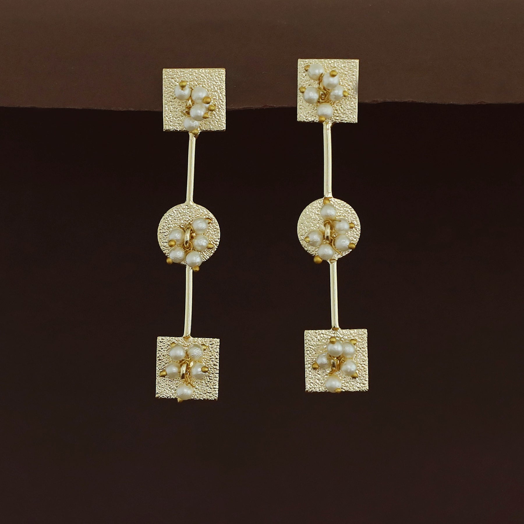 Dhuthi Textured Square Circle Stick Pearl Earring