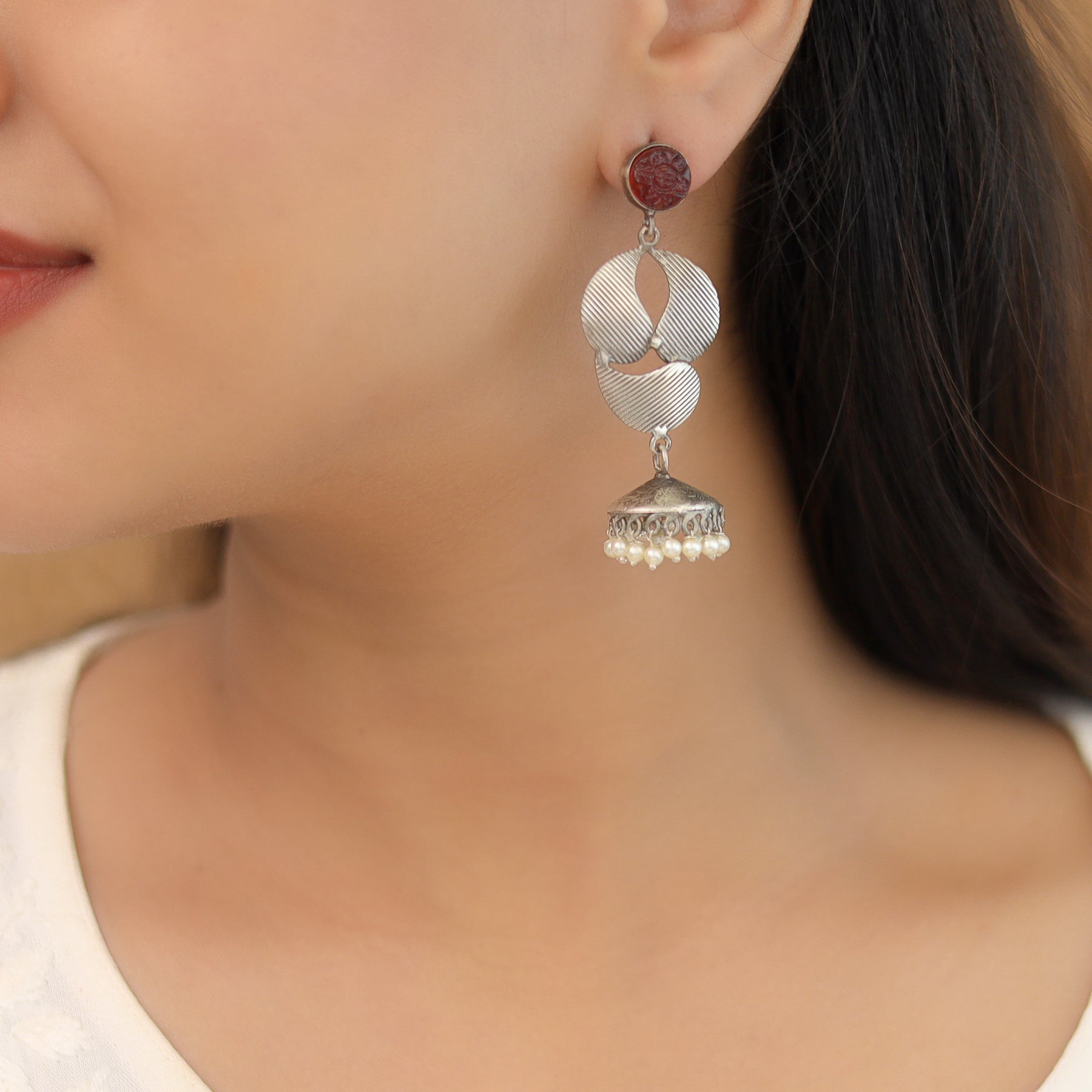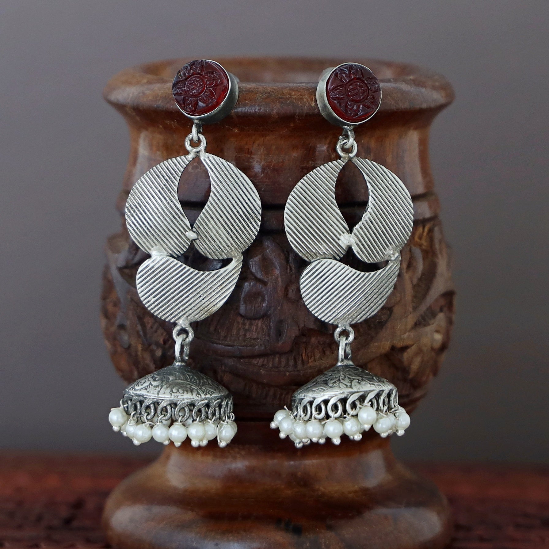 Carved Nizza Leafy Floral Design Jhumka ( Rust Finish )