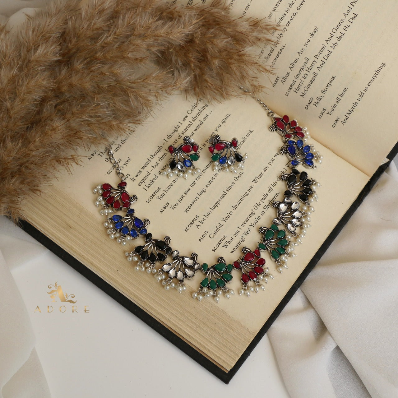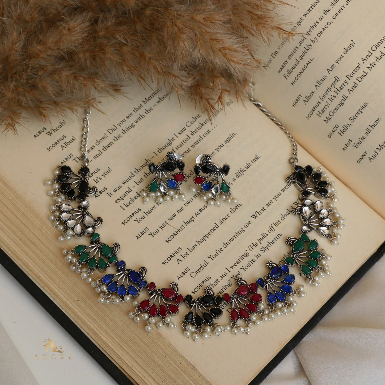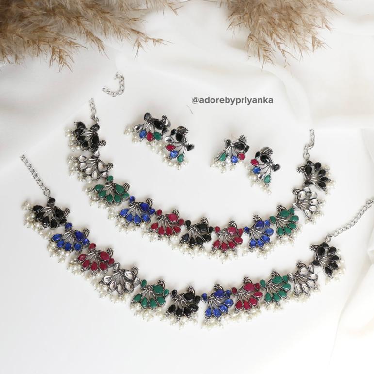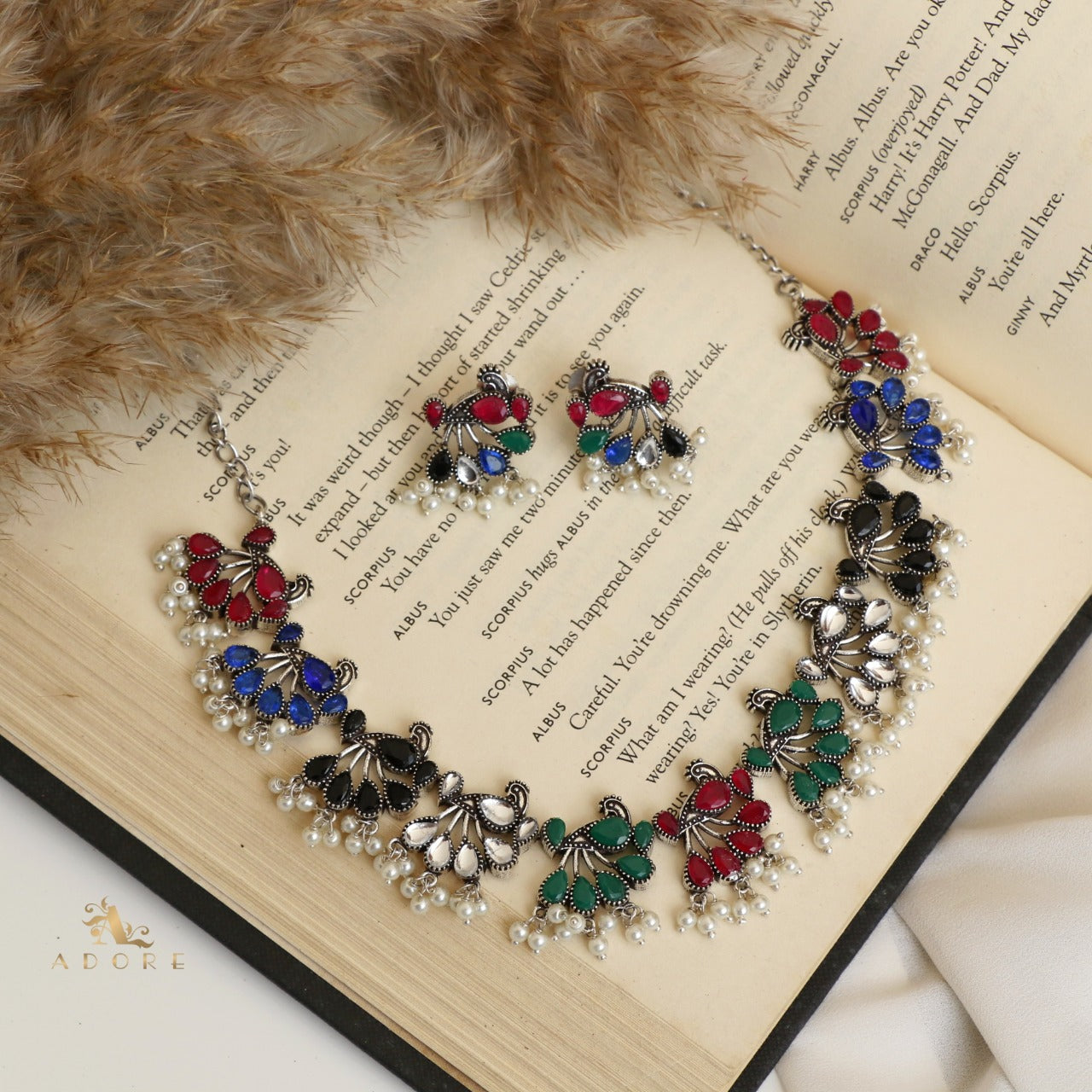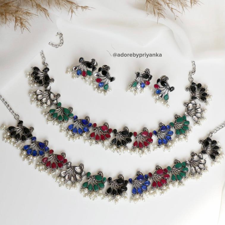 Nemali Peacock Neckpiece With Earring (Colour Option)