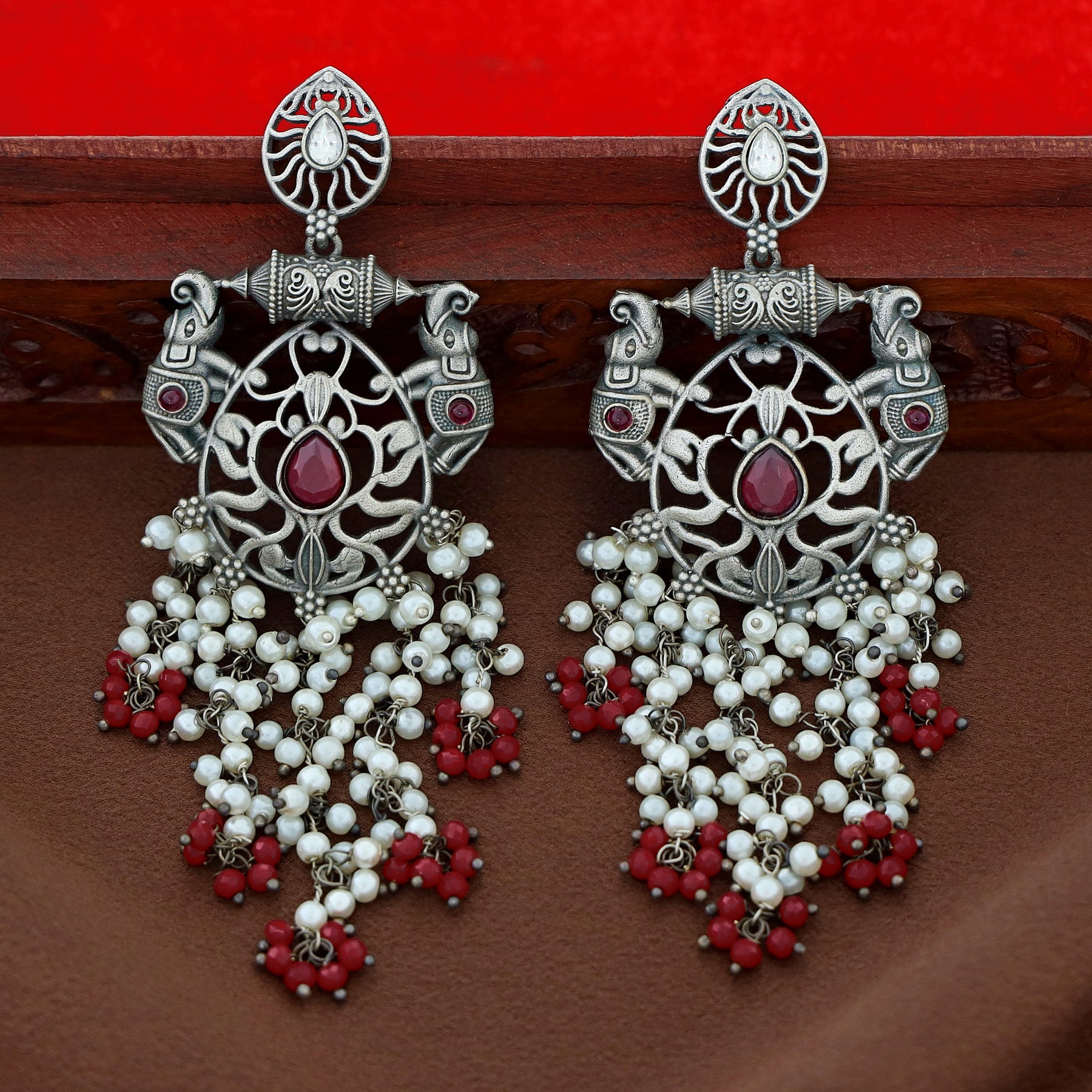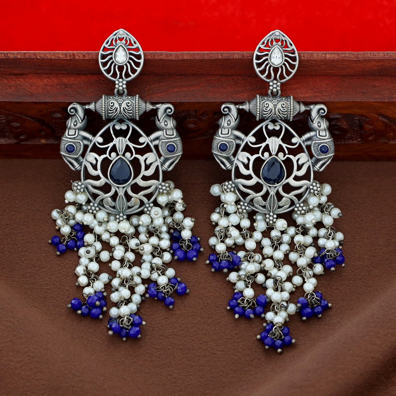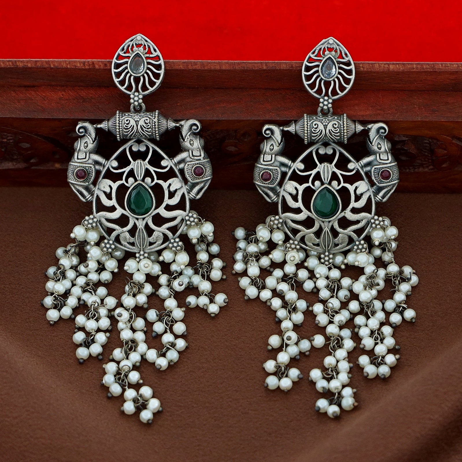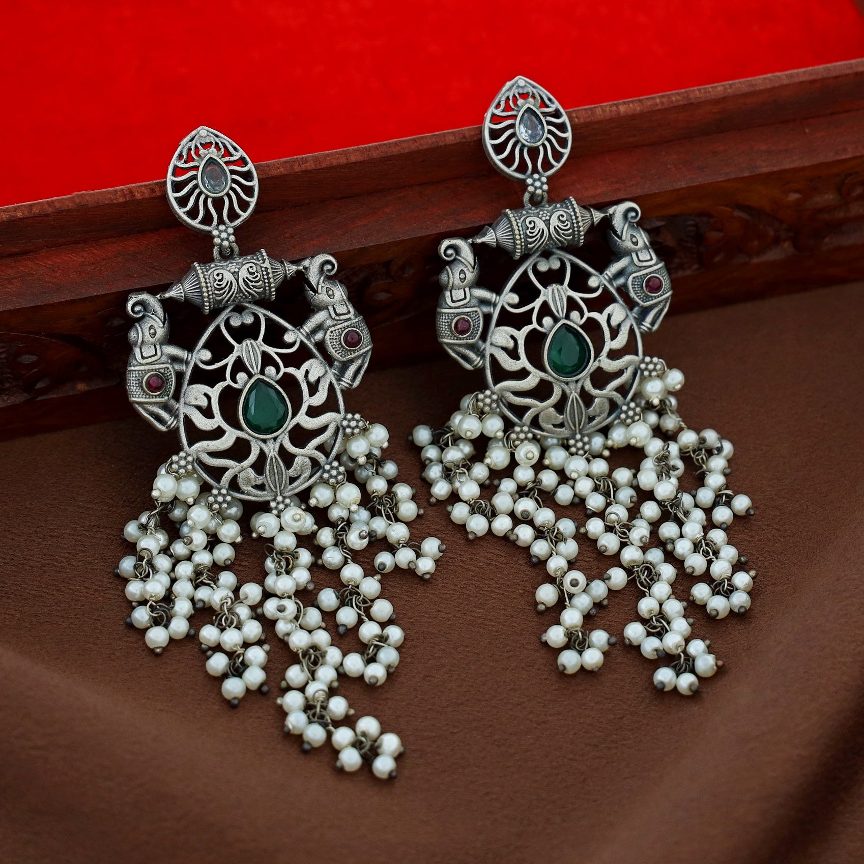Nina Twin Airavat Hanging Bunch Pearl Earring
