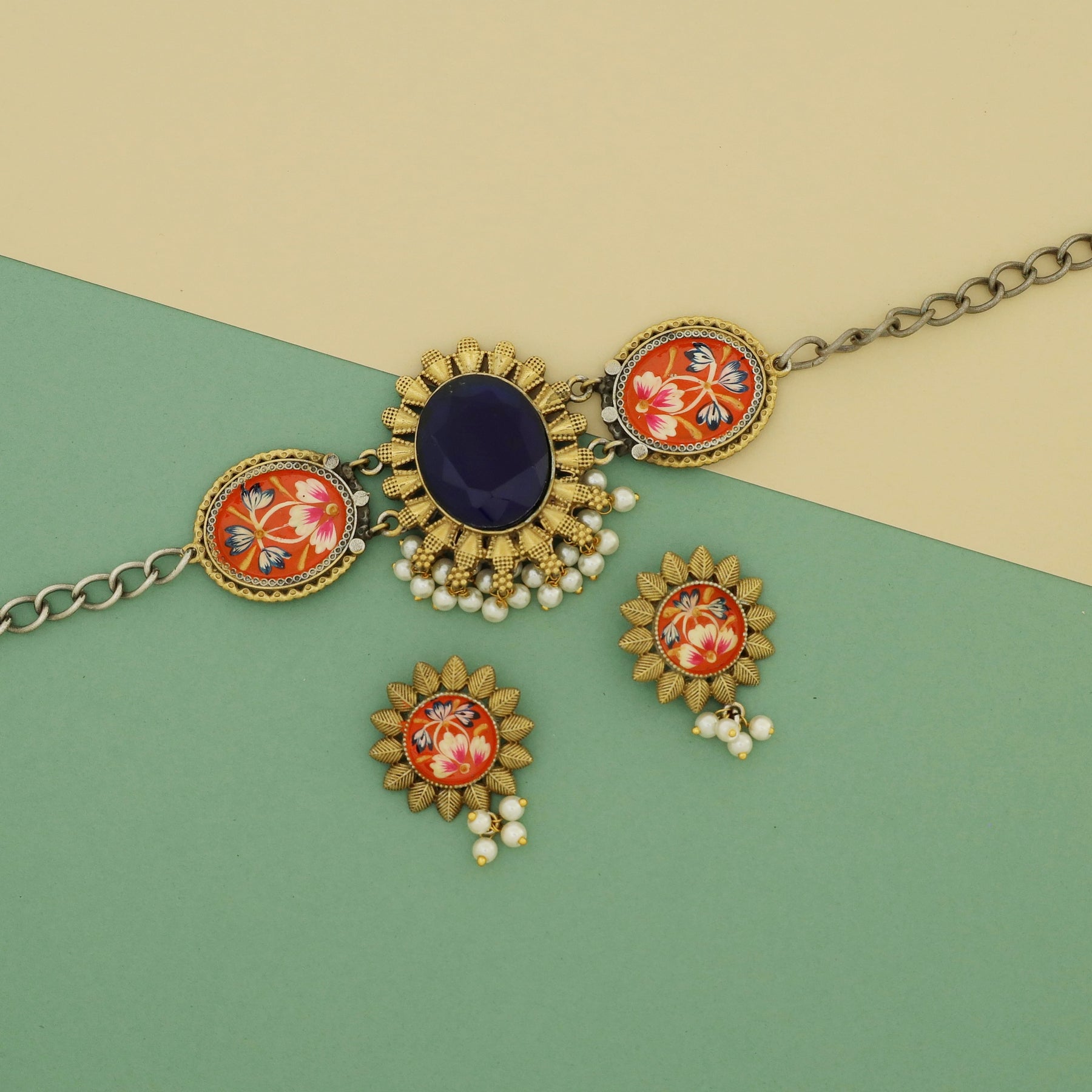 Ekanthika Hand Painted Oval Glossy Pearl Choker With Earring