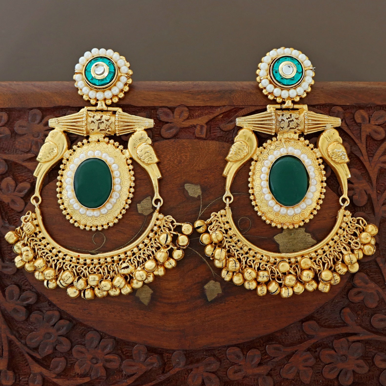 Aastha Golden Dual Bird Ghungroo Kashmiri Earring