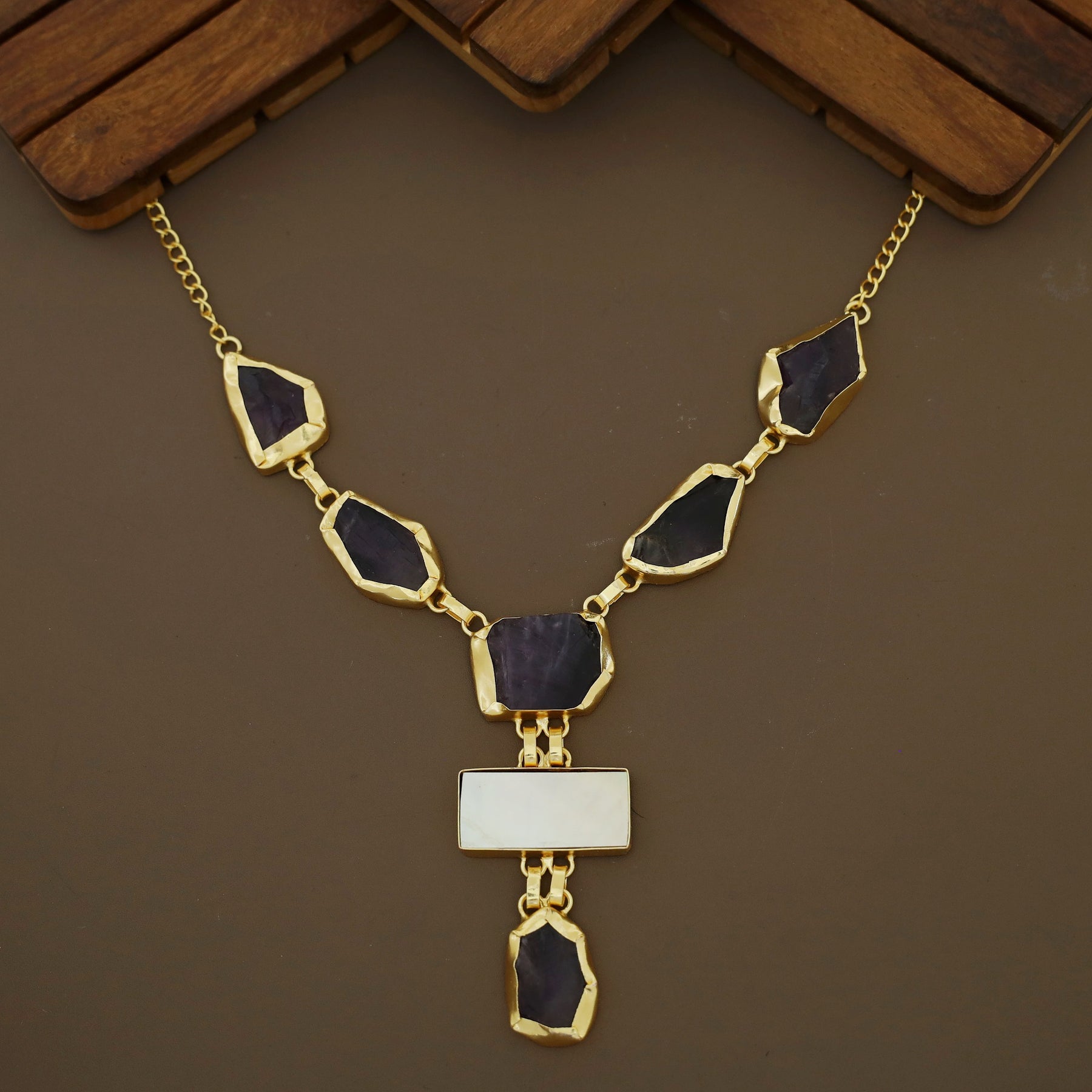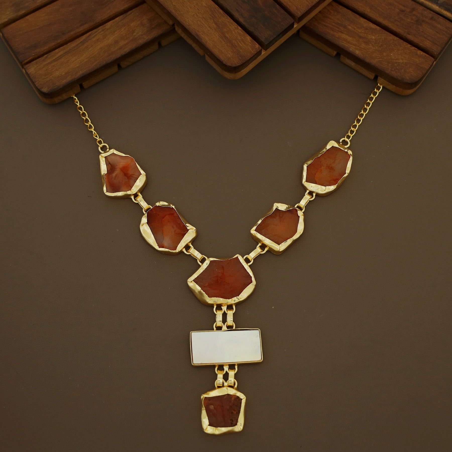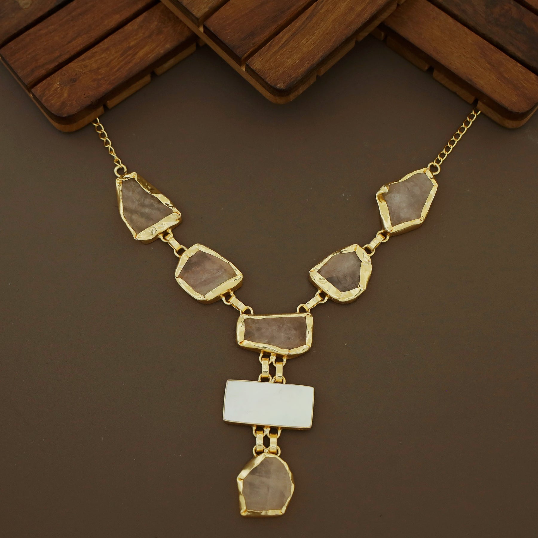 Charlize Raw Stone Rectangle MOP Long Neckpiece