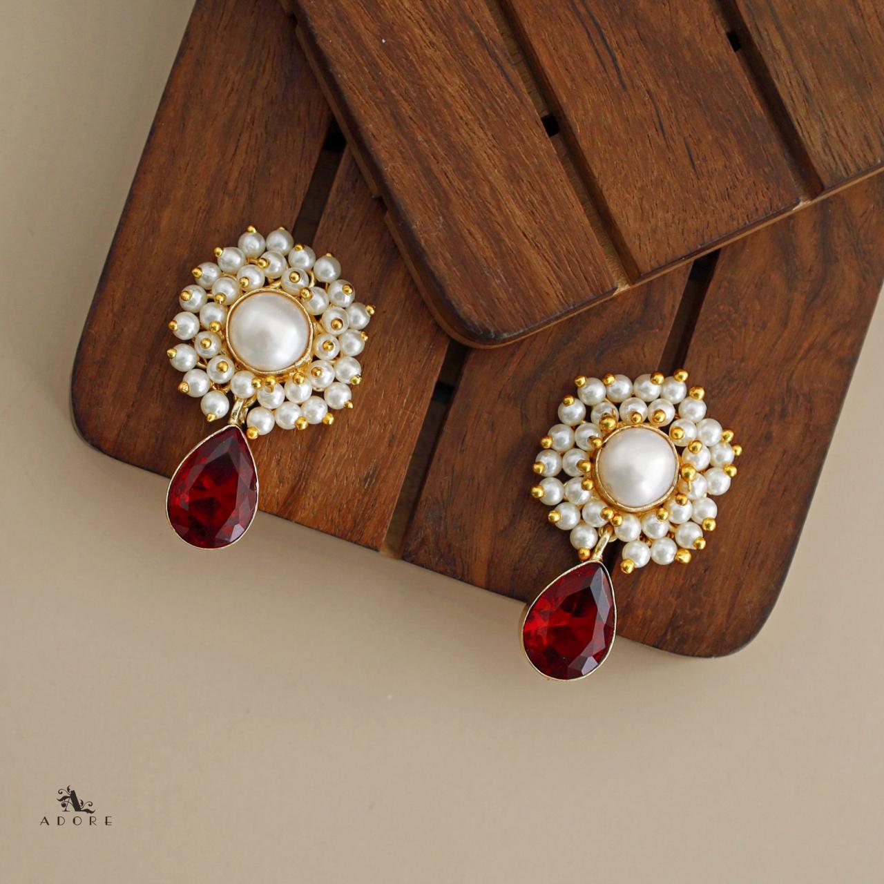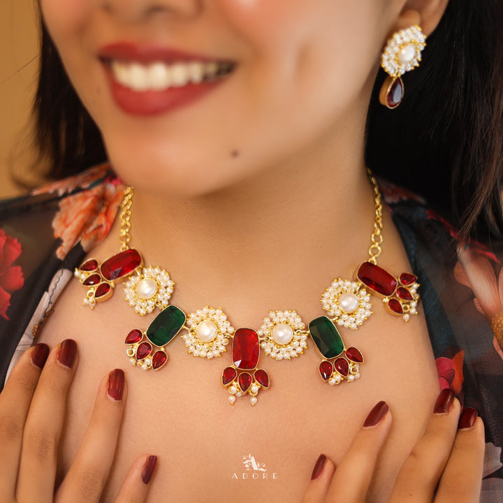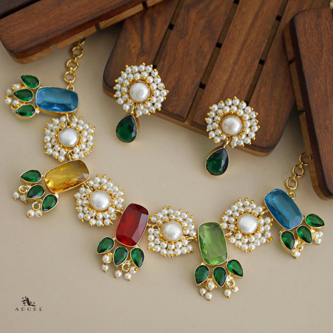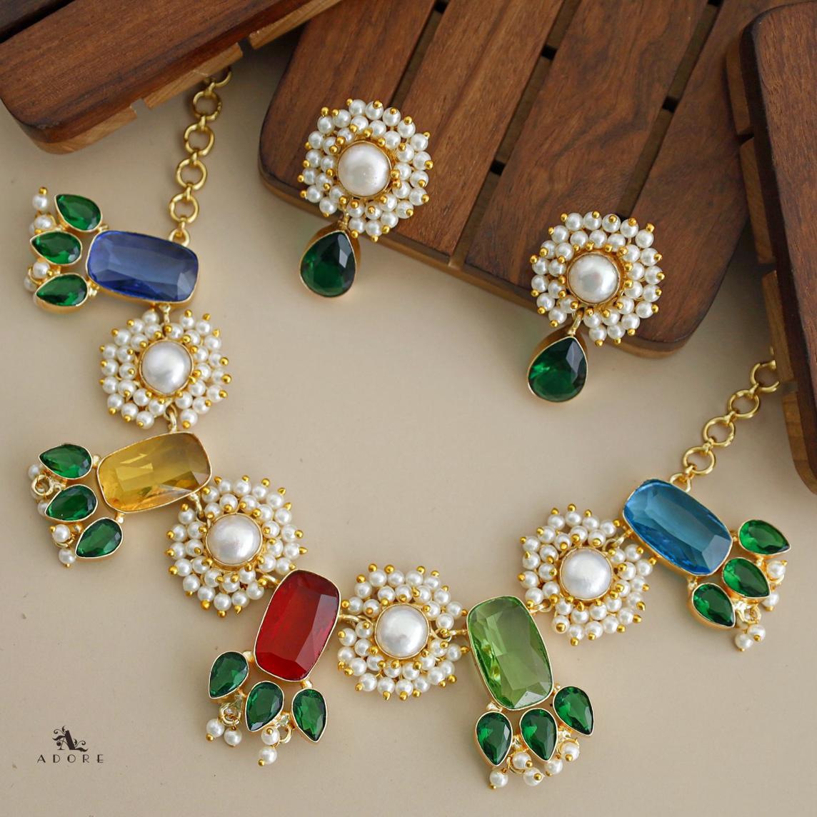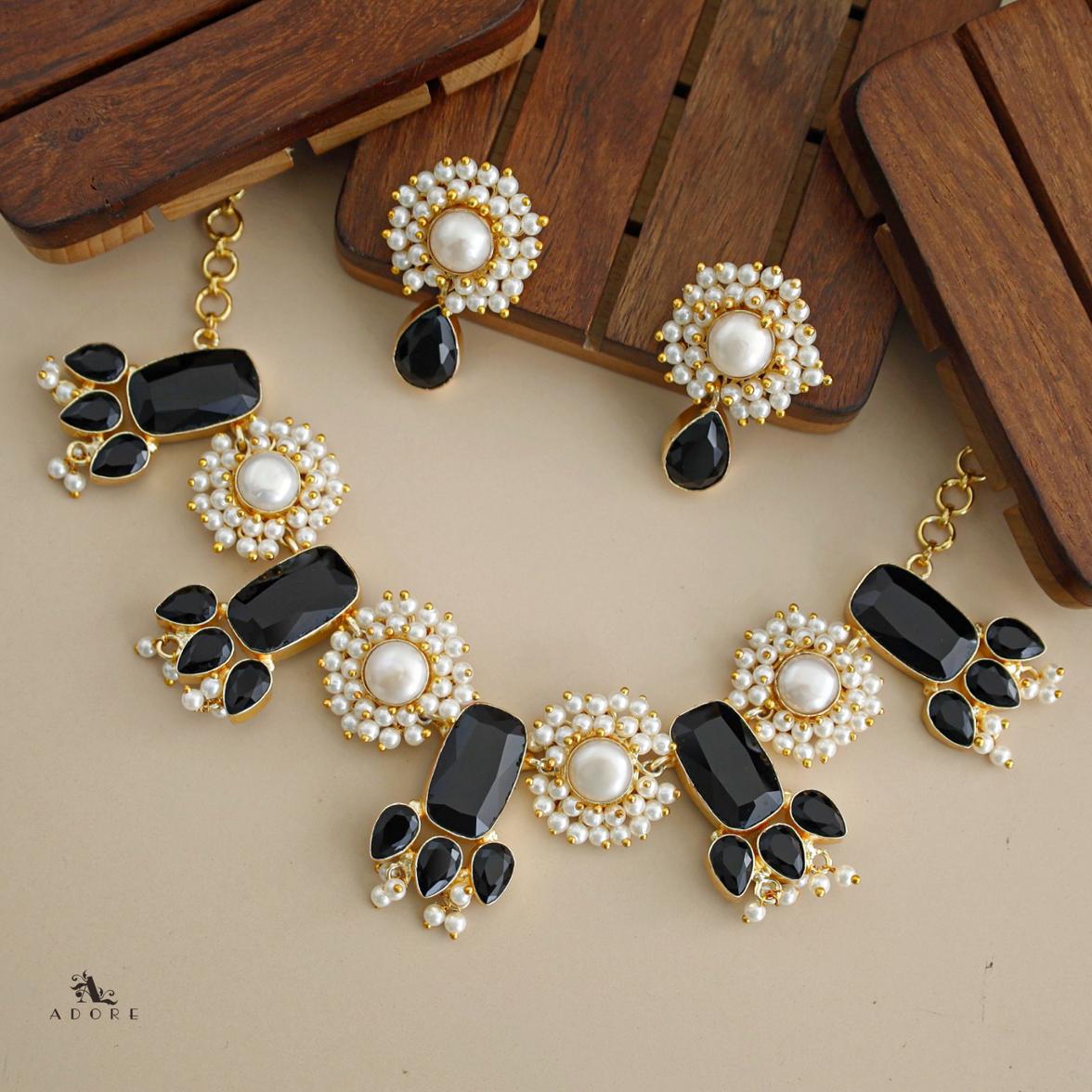 Glossy Rectangle + Cluster Pearl Baroque Neckpiece with Earring