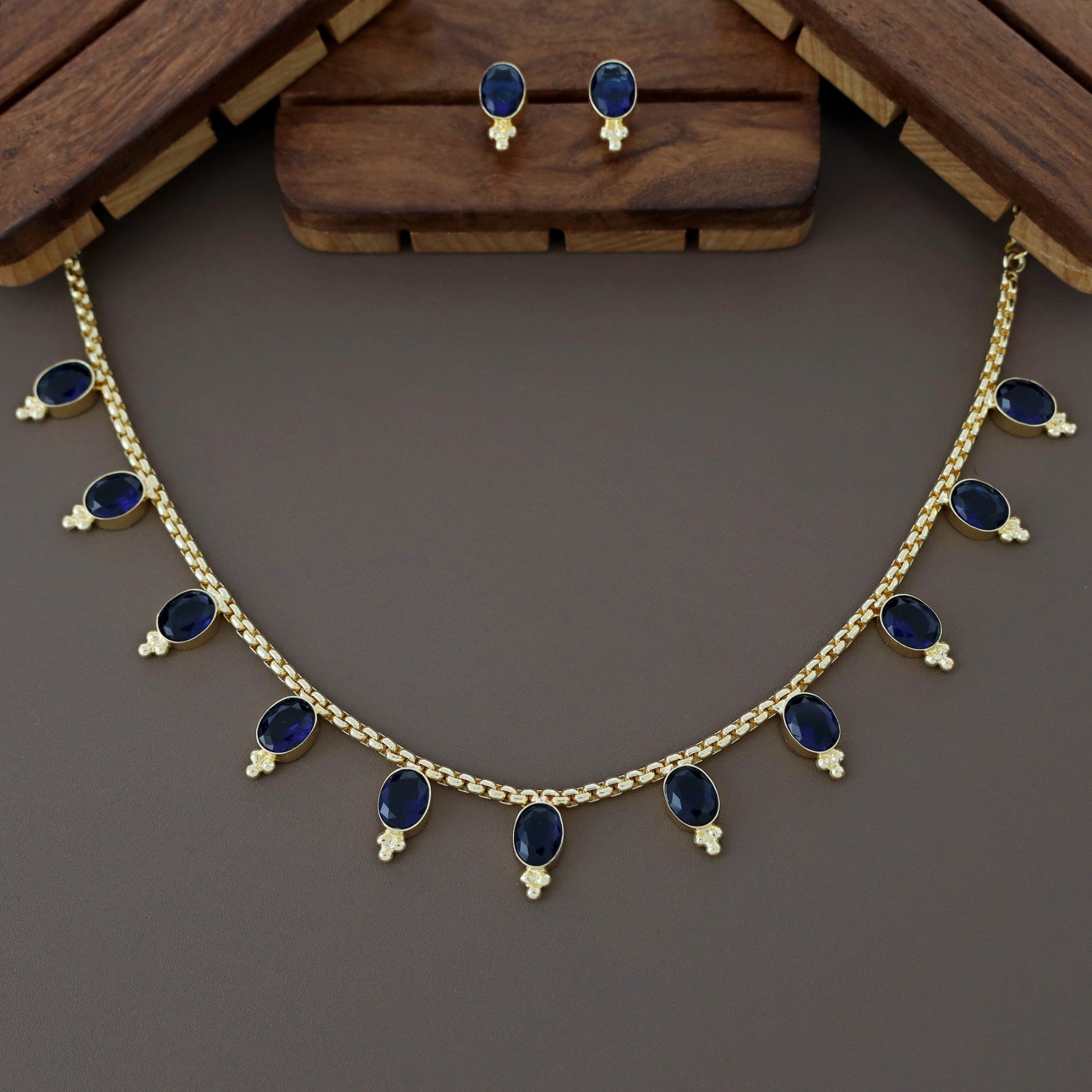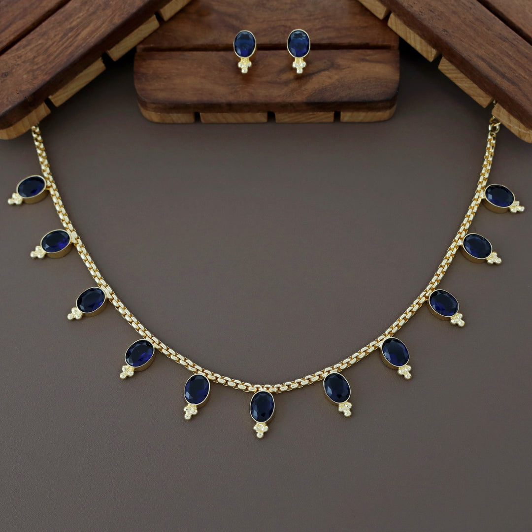 Letitia Golden Glossy Stone Neckpiece With Earring