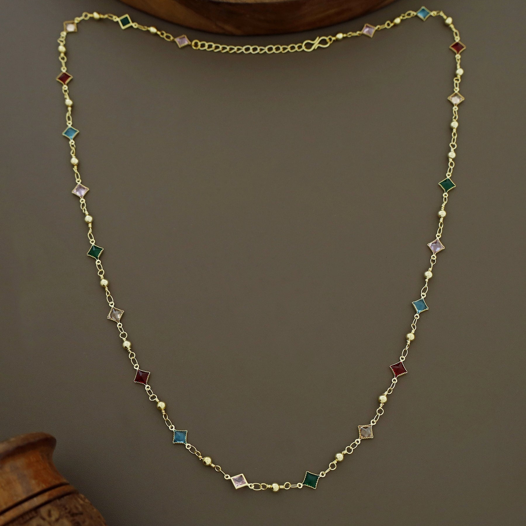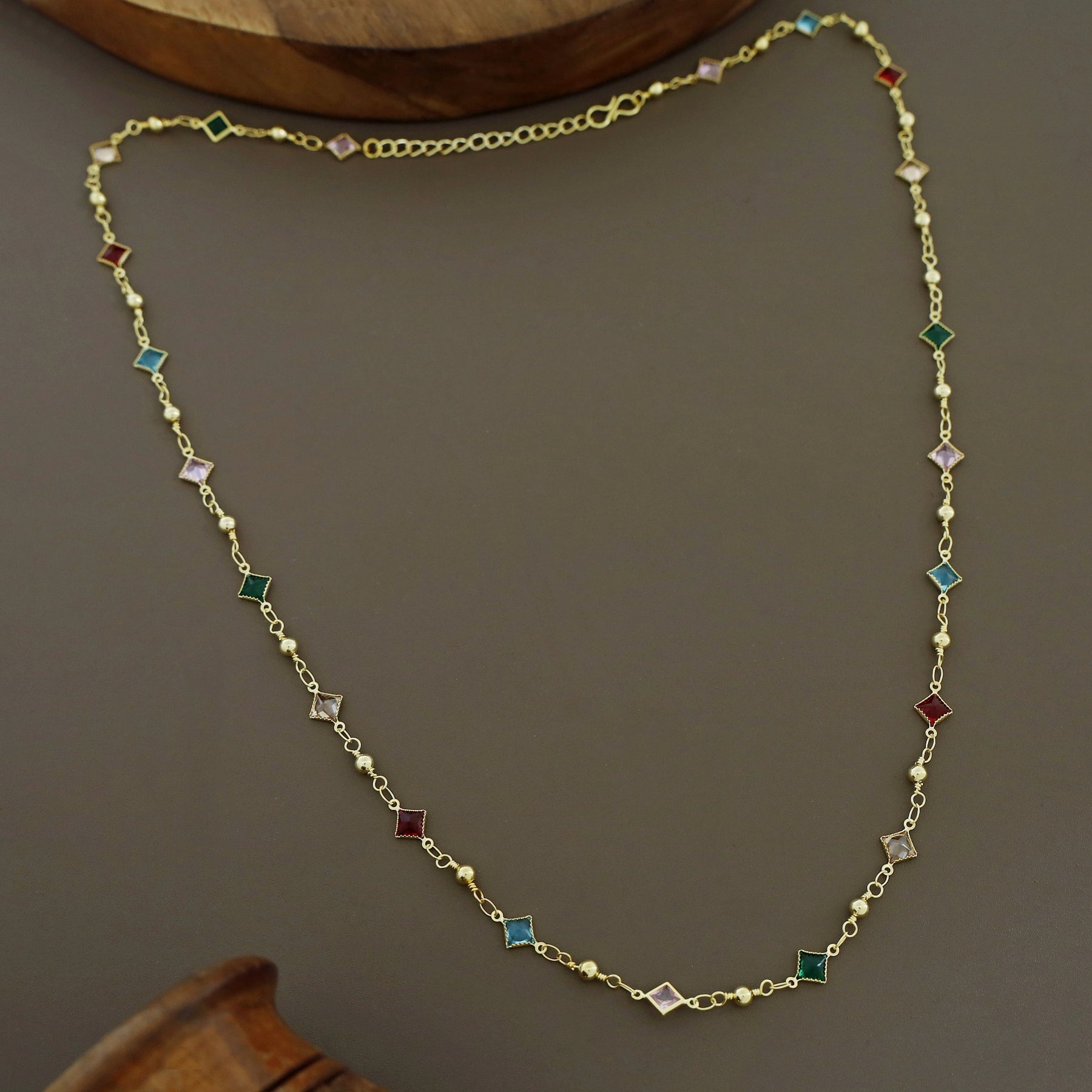 Golden Ball Mini Diamond Glossy Stone Long Neckpiece