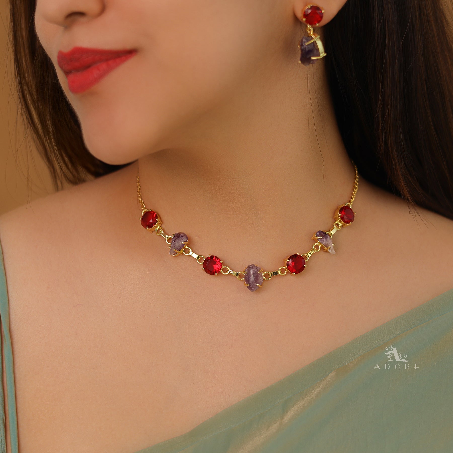 Raw Stone + Glossy Claw Neckpiece With Earring
