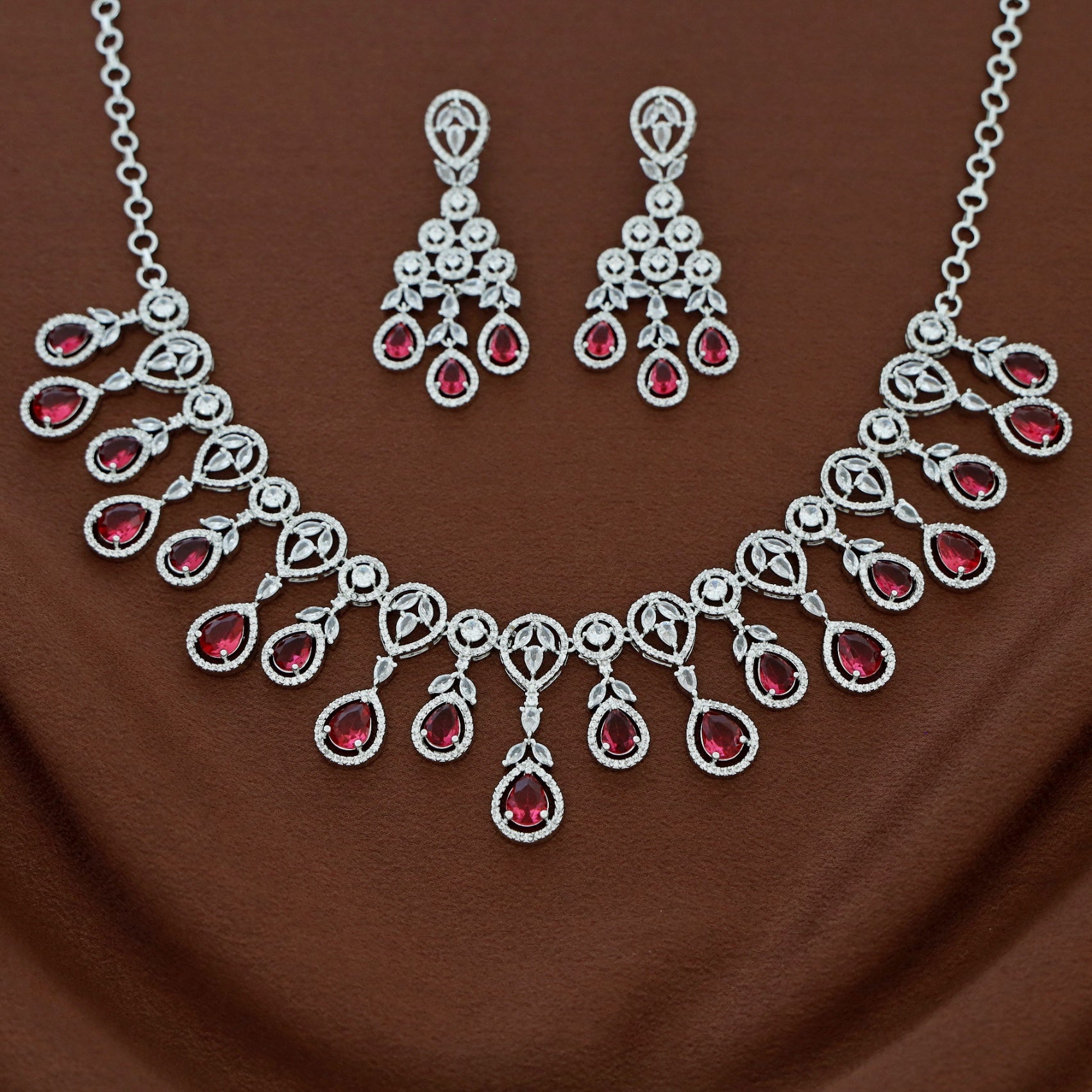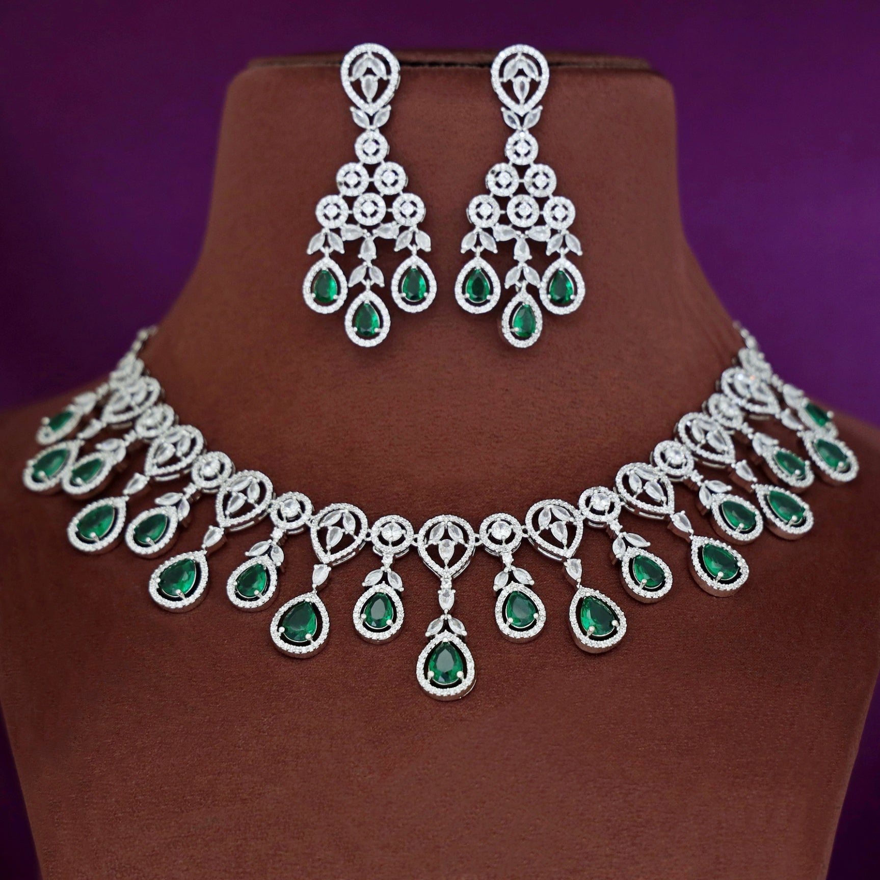 Premium Saiya AD Stone Glossy Drop Short Neckpiece With Earring