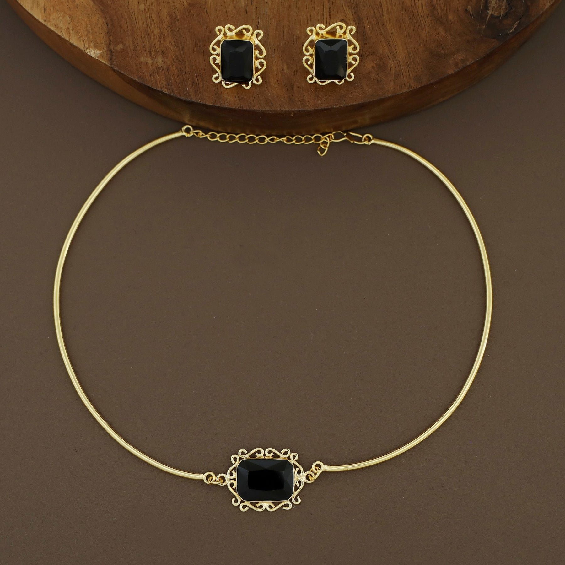 Ritu Golden Rectangle Glossy Neck Cuff With Earring