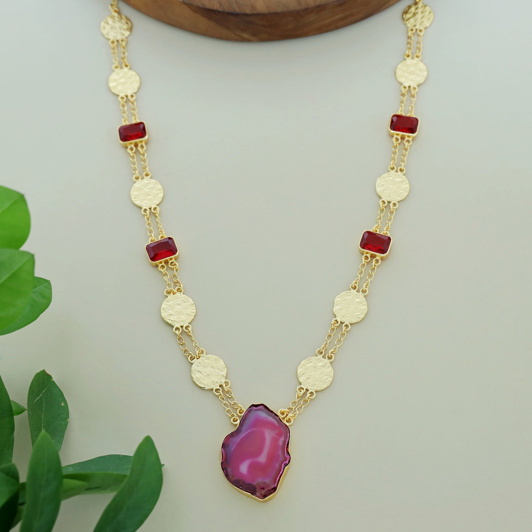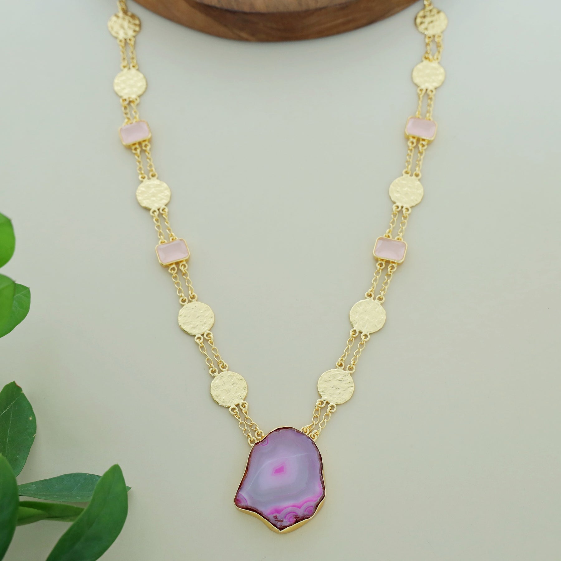 Vama Golden Hammered Circle Glossy + Agate Neckpiece