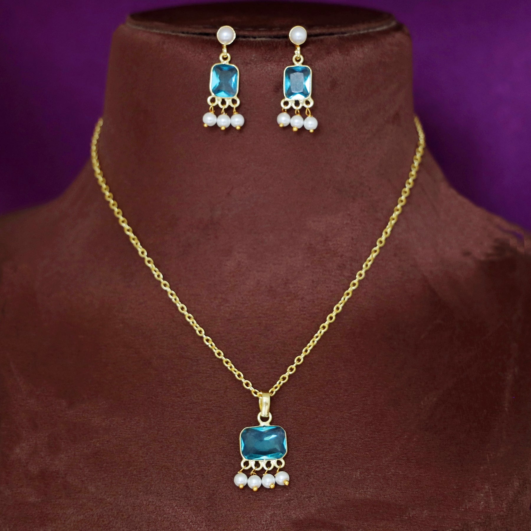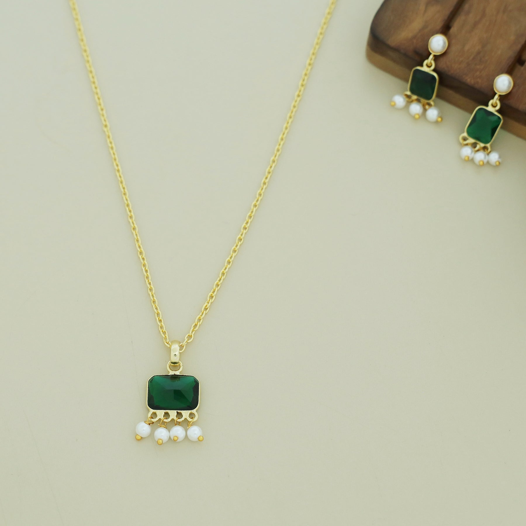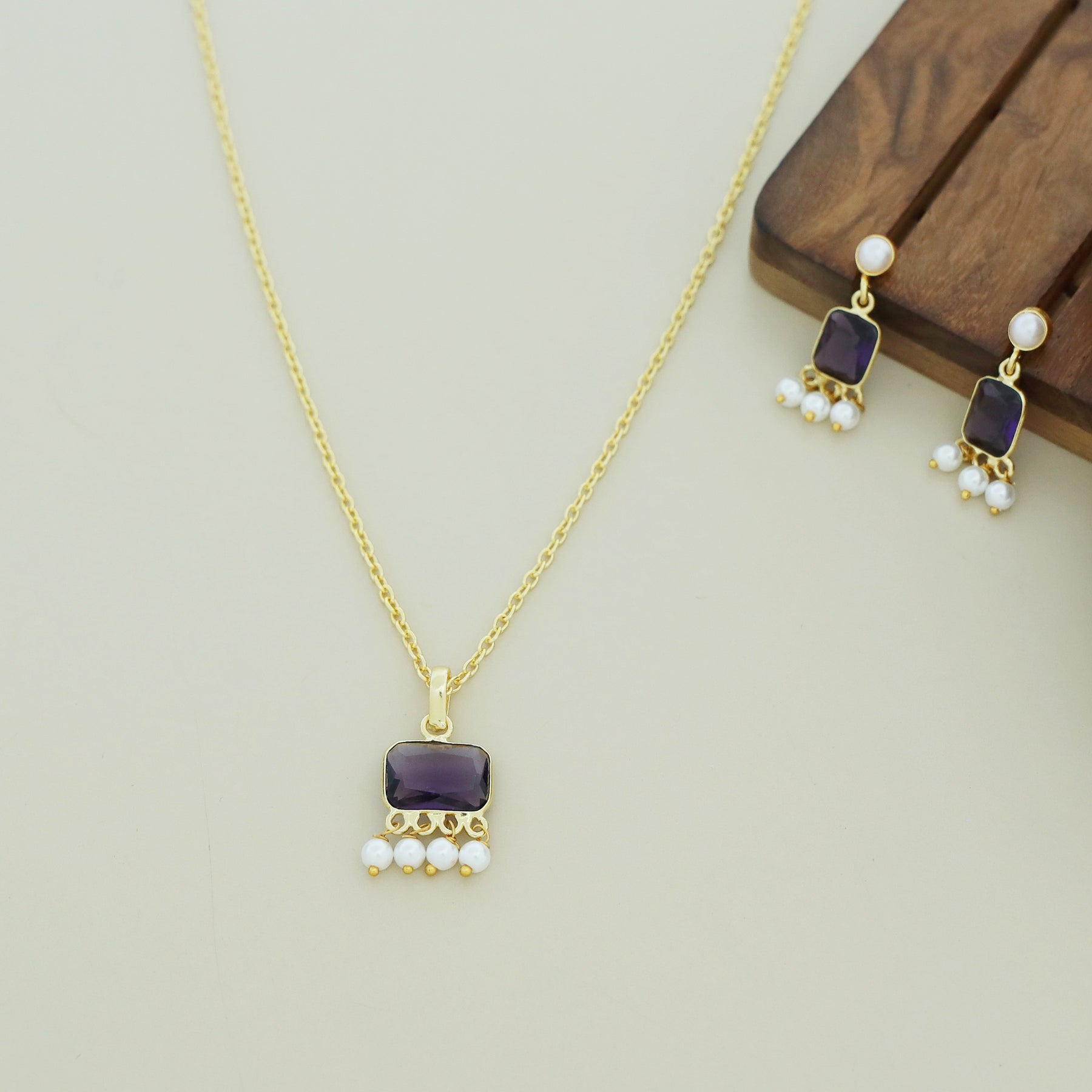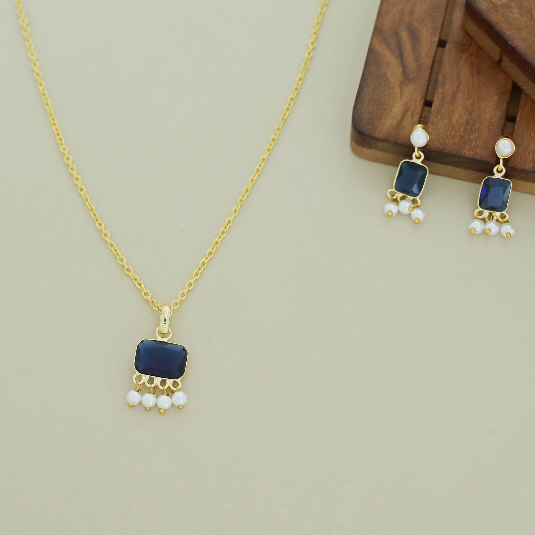 Brenna Rectangle Glossy Pearl Neckpiece With Earring