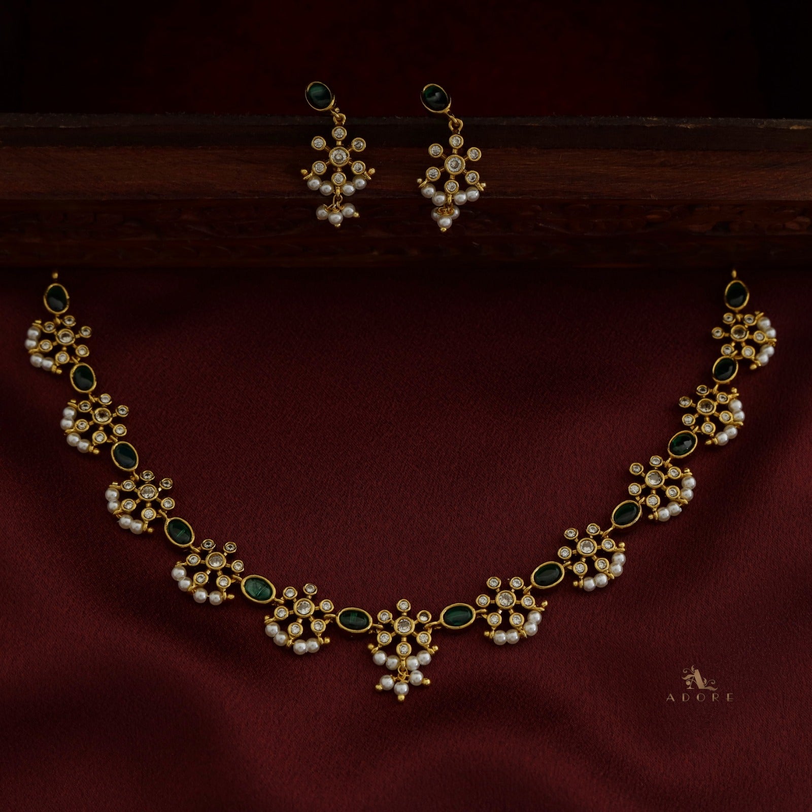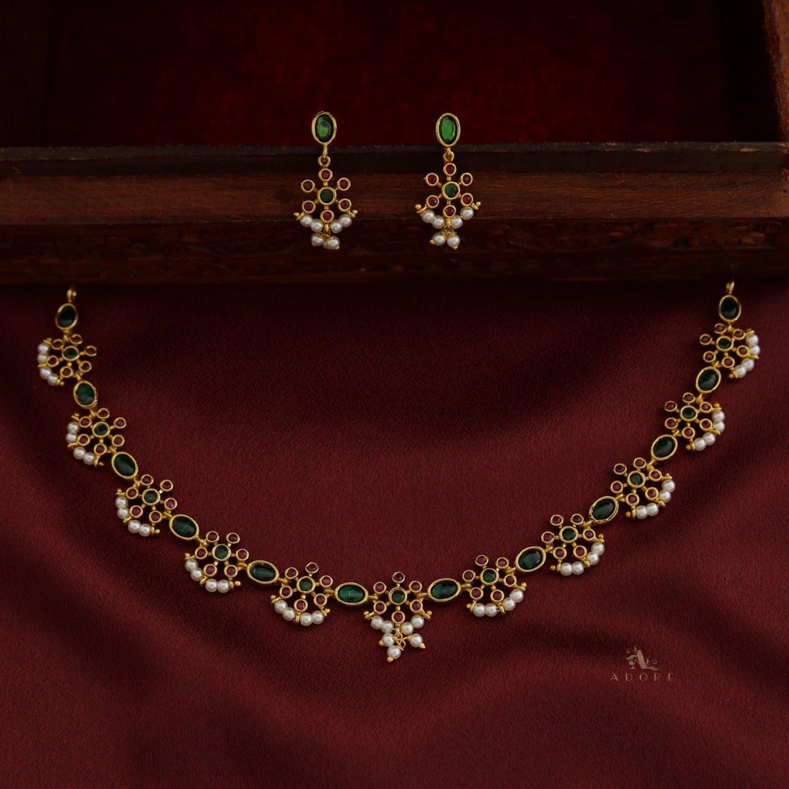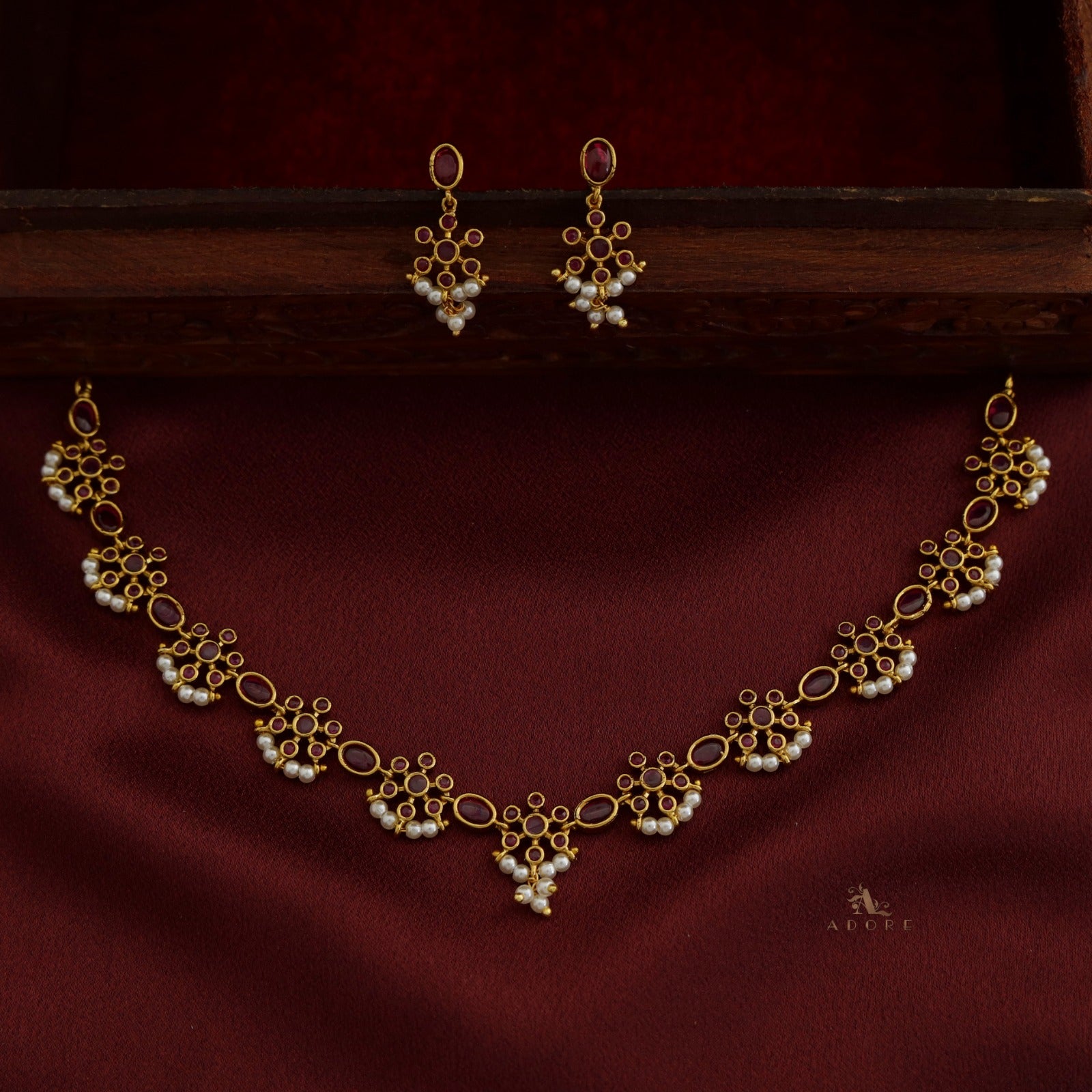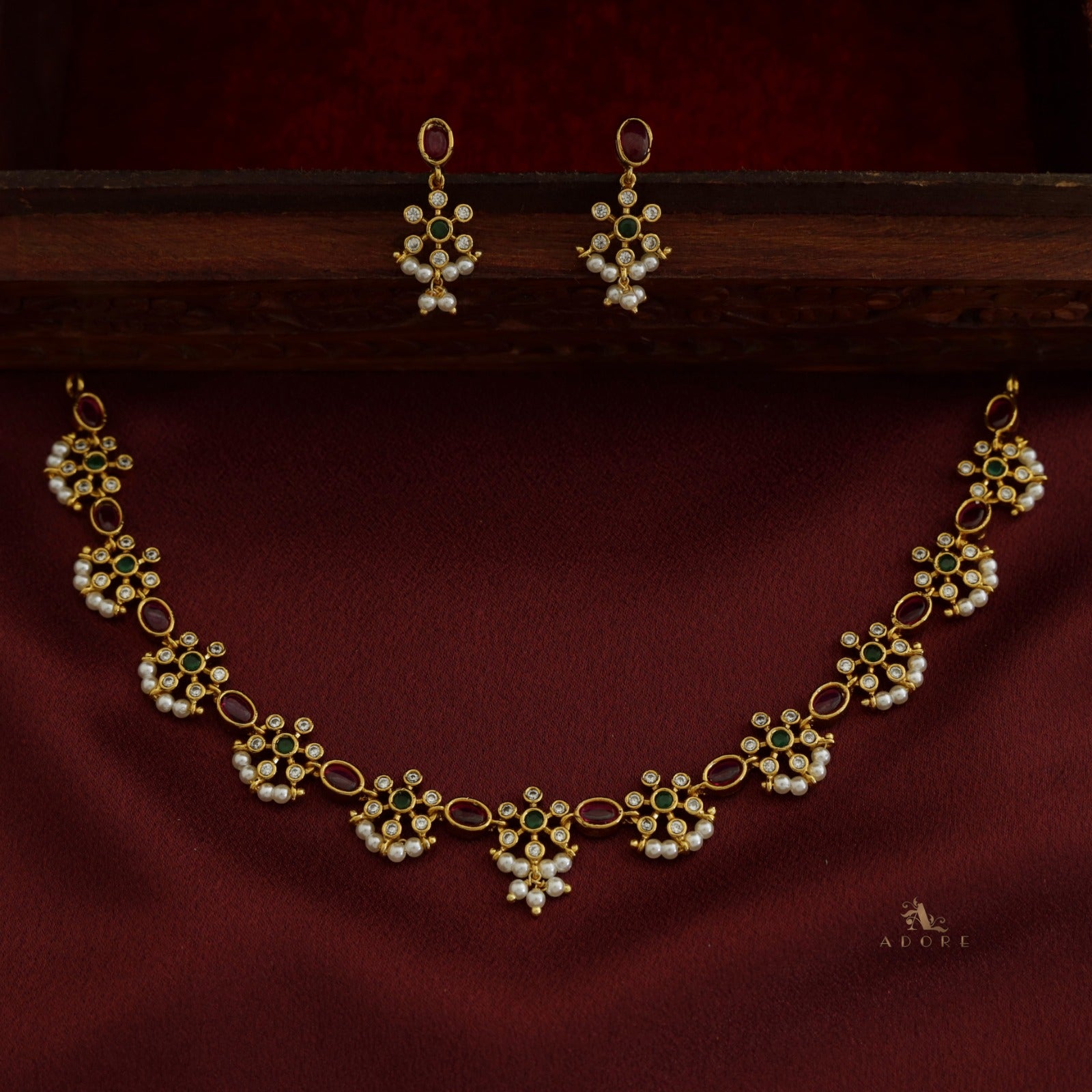 Dharani Pearl Short Neckpiece With Earring