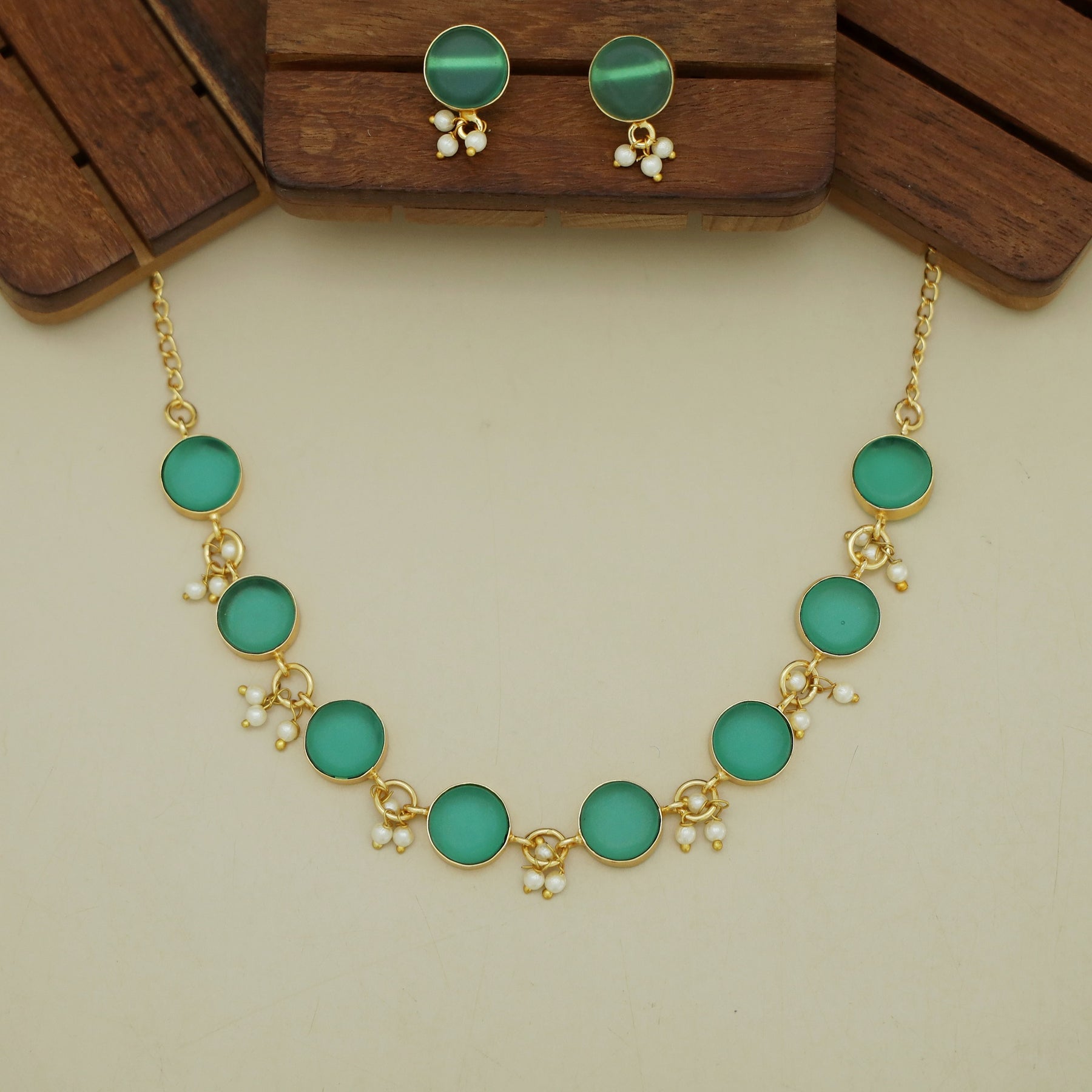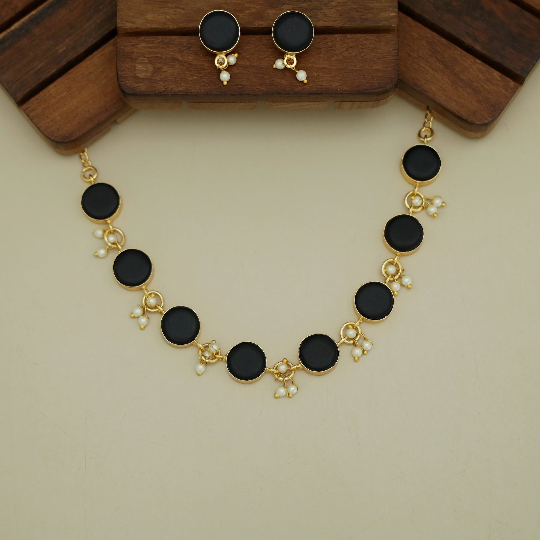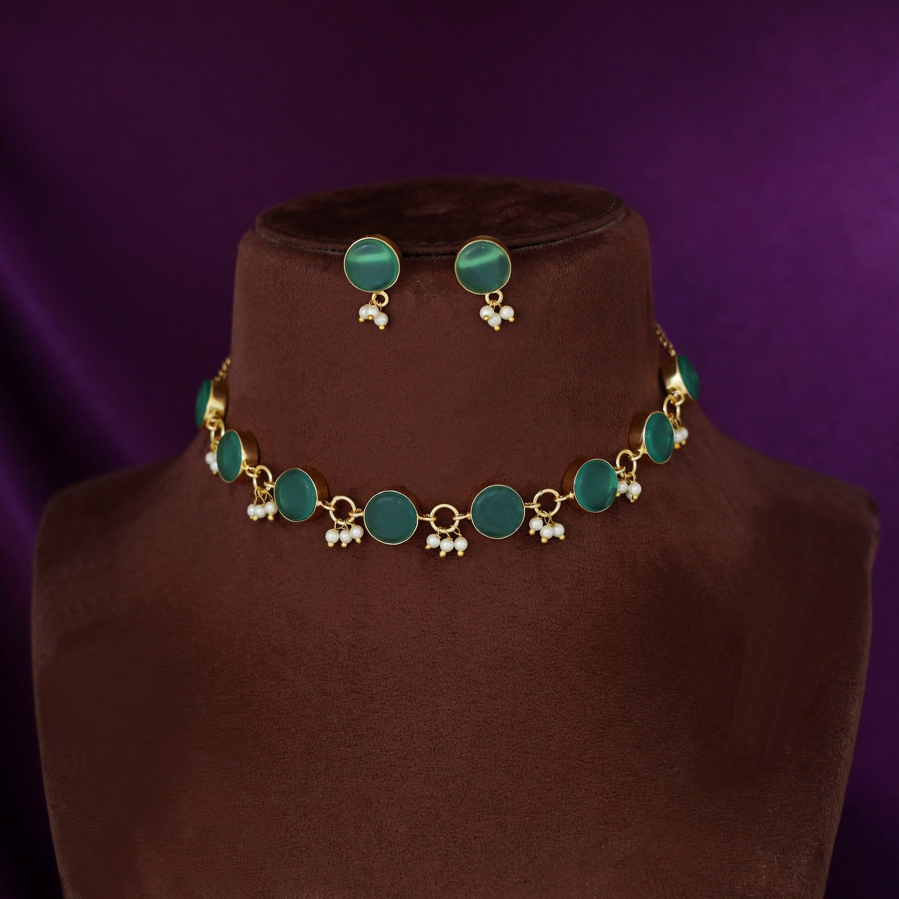 Eudor Round Raw Stone Pearl Short Neckpiece/Choker With Earring