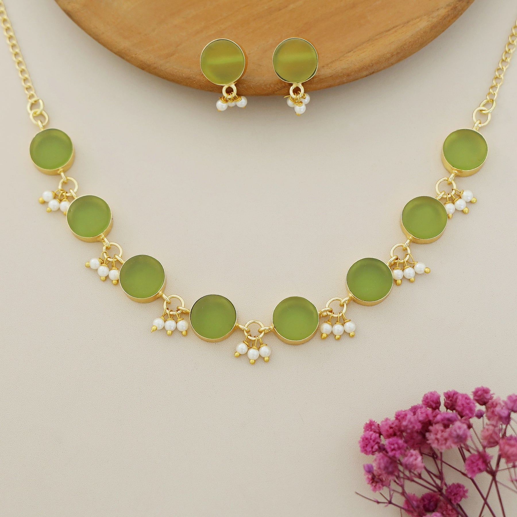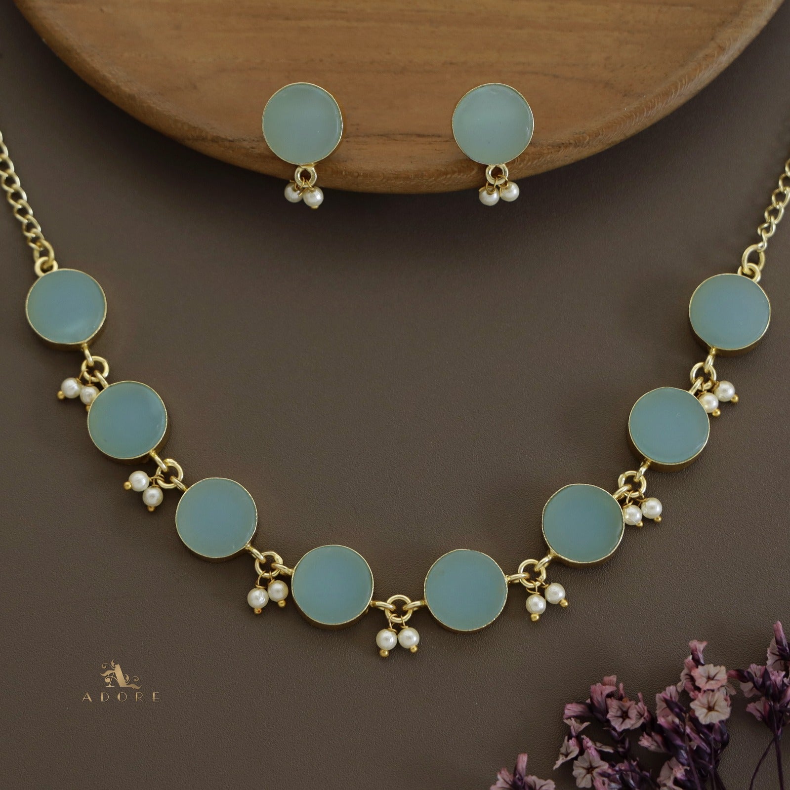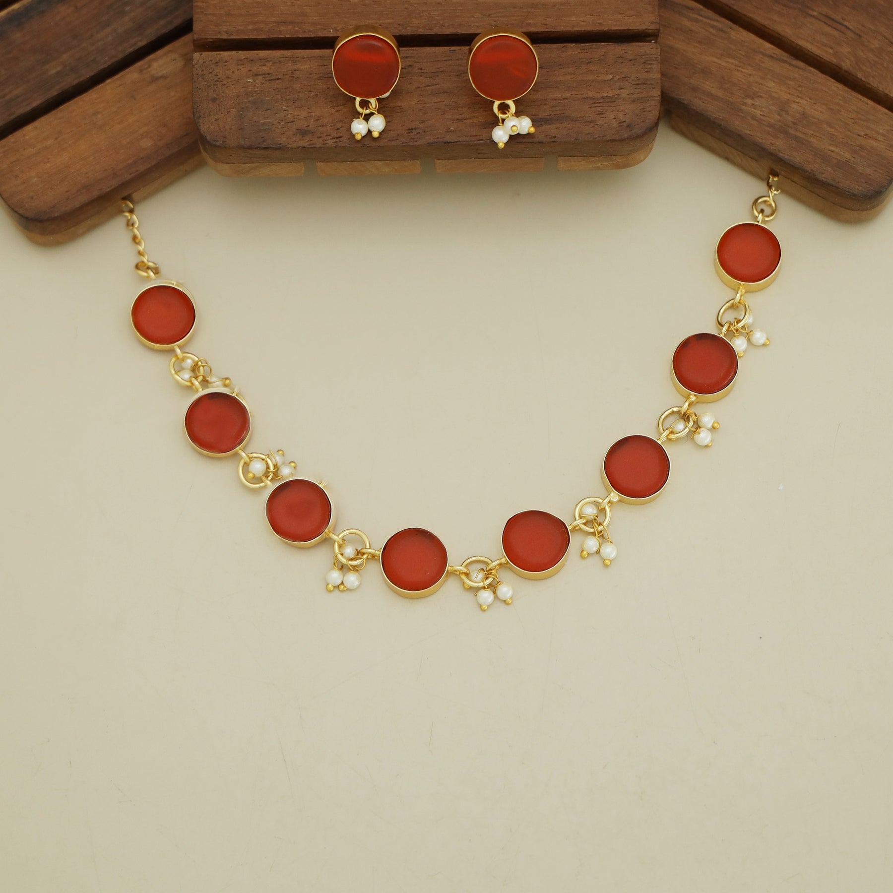 Eudor Round Raw Stone Pearl Short Neckpiece/Choker With Earring