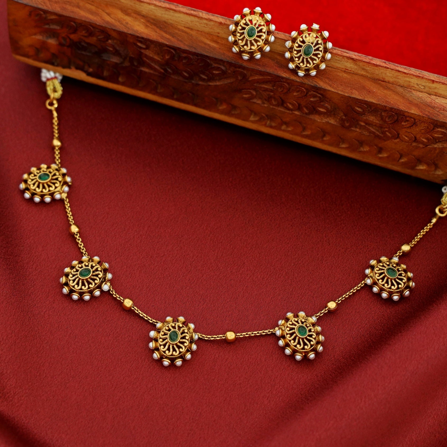 Maheera Oval Pearl Floral Short Neckpiece With Stud