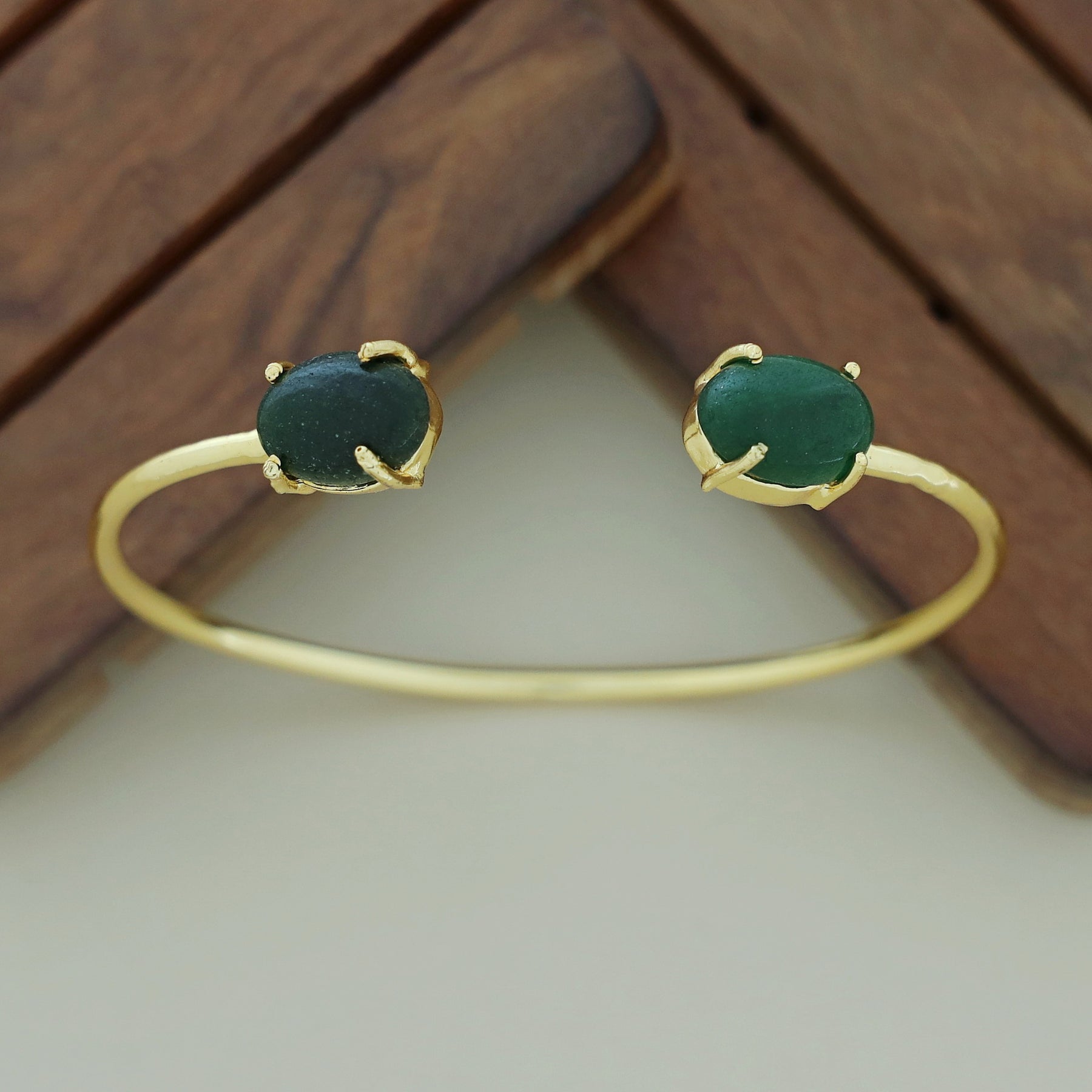 Mebal Golden Dual Oval Natural Stone Claw Bangle