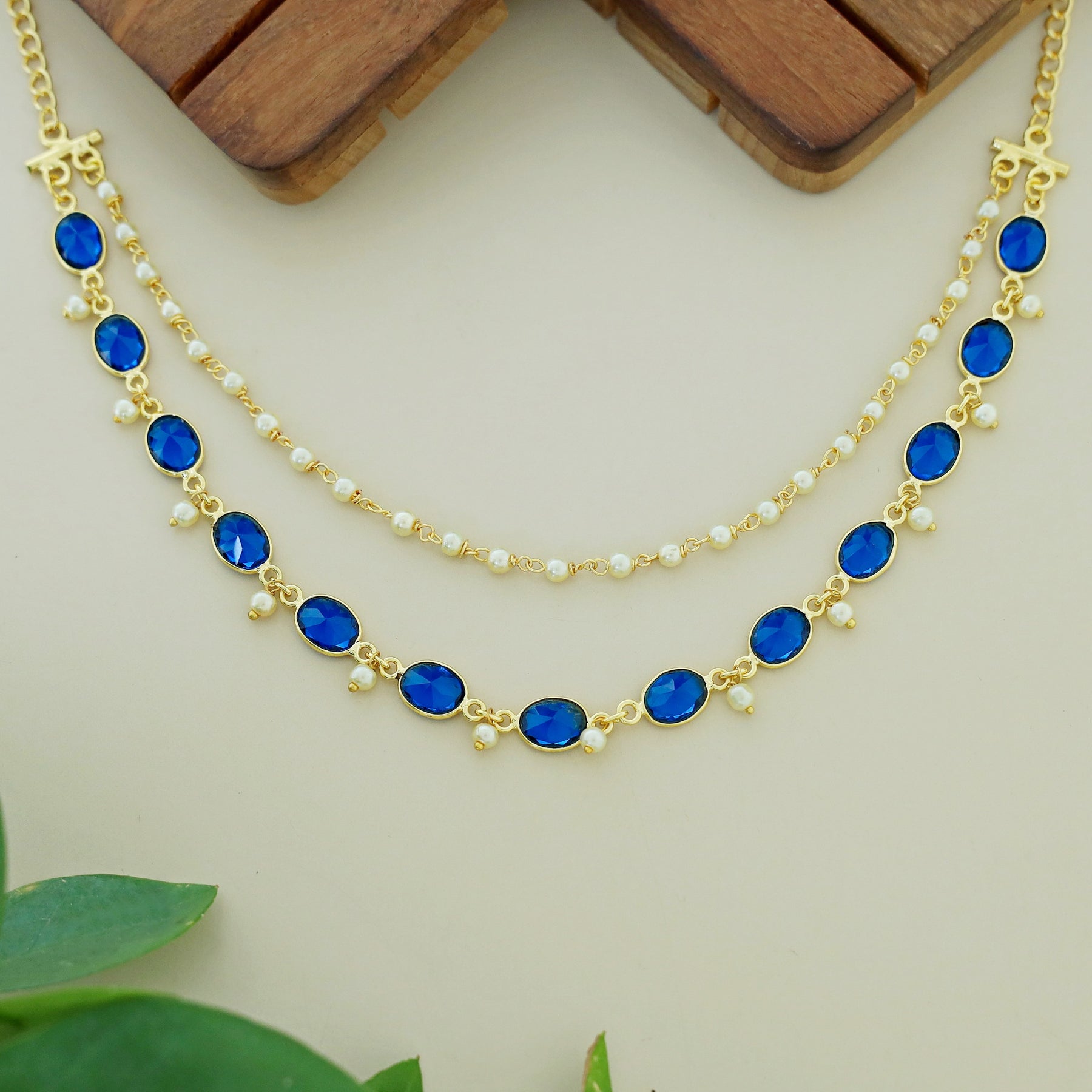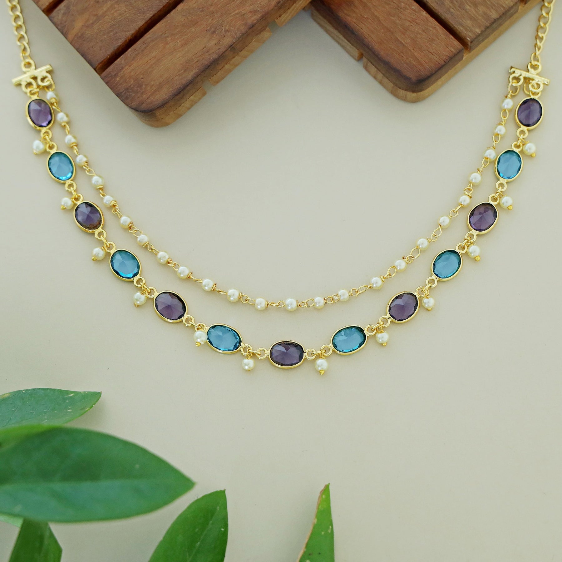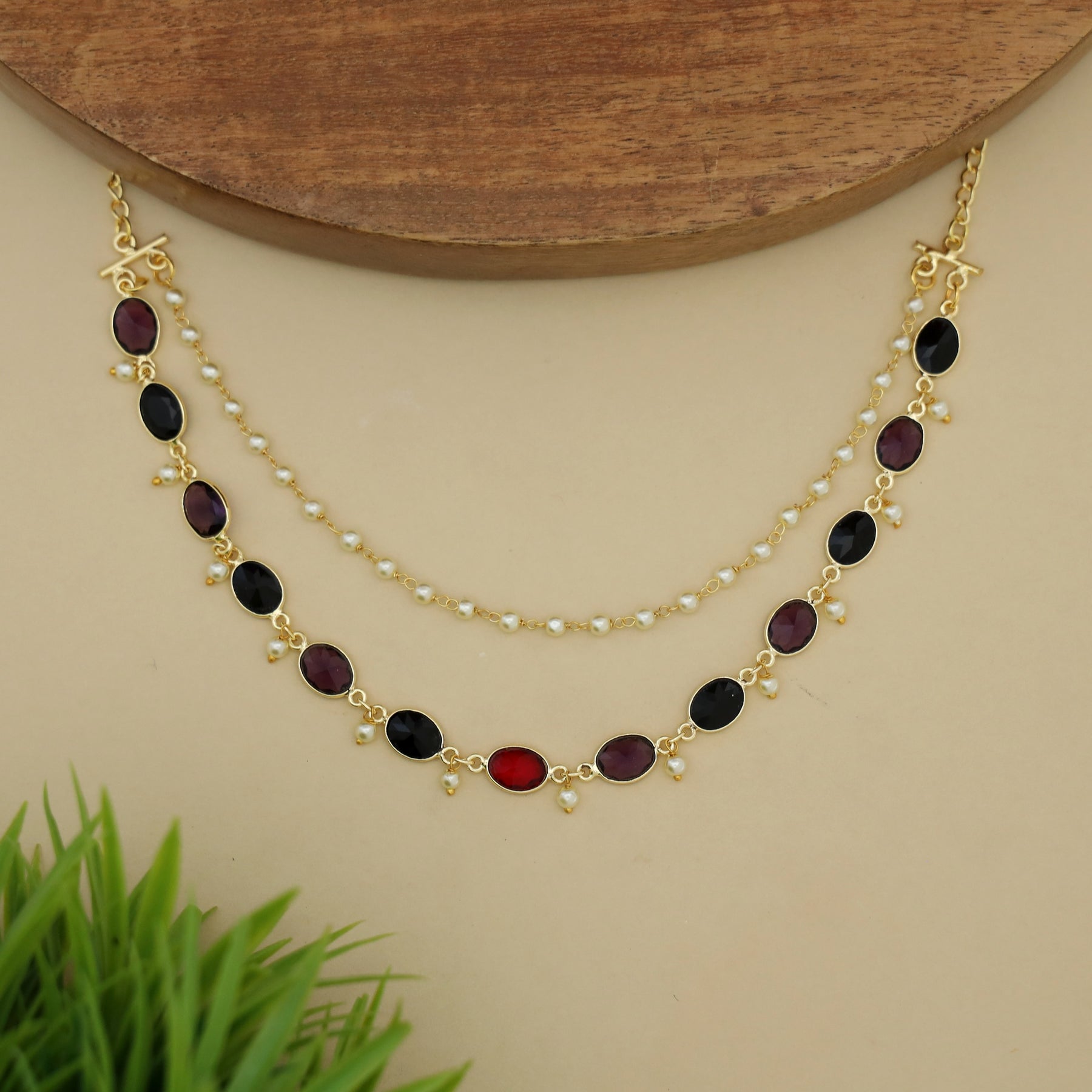Carly Pearl 2 Layer Oval Glossy Stone Neckpiece